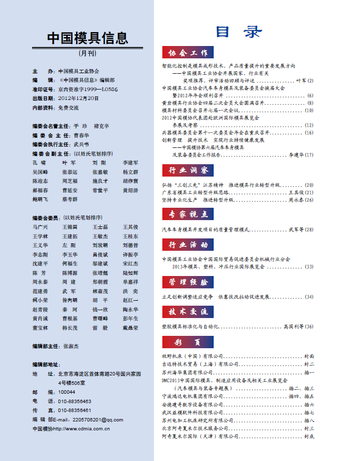 中國模具信息2012年第十二期目錄