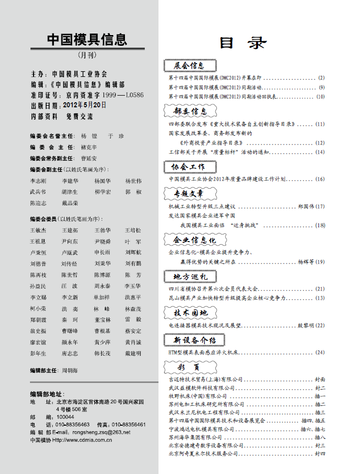 模具行業(yè)“十四五”發(fā)展綱要? ?100元/本? ? ?聯(lián)系電話(huà):010-88356463