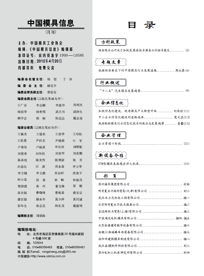 模具行業(yè)“十四五”發(fā)展綱要? ?100元/本? ? ?聯(lián)系電話(huà):010-88356463