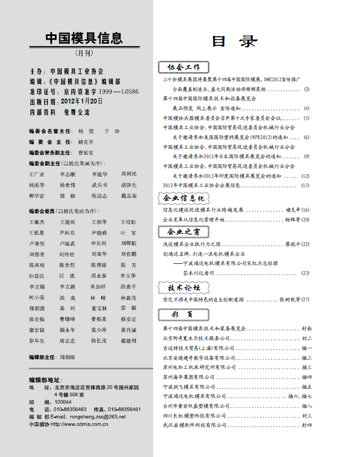 模具行業(yè)“十四五”發(fā)展綱要? ?100元/本? ? ?聯(lián)系電話(huà):010-88356463