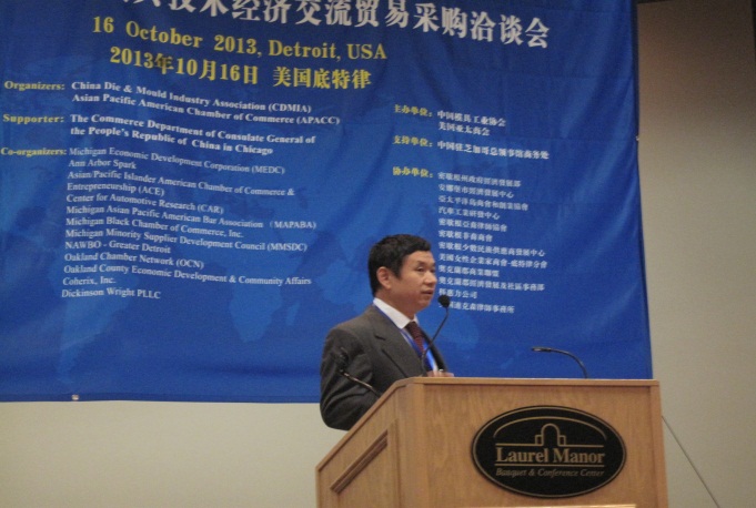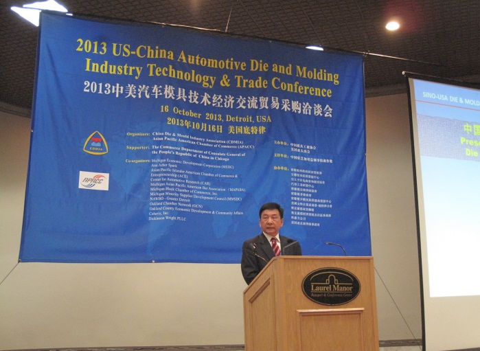 由中國模具工業(yè)協(xié)會(huì )、美國亞太商會(huì )共同主辦的“2013中美汽車(chē)模具技術(shù)經(jīng)濟貿易采購洽談會(huì )(2013US-China Automotive Die and Molding Industry Technology & Trade Conference)”于2013年10月15--17日在美國底特律成功舉辦。本次活動(dòng)得到中國駐芝加哥總領(lǐng)事館商務(wù)處(支持單位)和美國密歇根州政府經(jīng)濟發(fā)展署、安娜堡巿經(jīng)濟發(fā)展中心、亞太平洋島商會(huì )和創(chuàng )業(yè)協(xié)會(huì )、美國汽車(chē)工業(yè)研發(fā)中心、美國科惠力公司、美國迪克森律師事務(wù)所、 美國密歇根亞裔律師協(xié)會(huì )、美國密歇根非裔商會(huì )、美國密歇根少數民族供應商發(fā)展中心、美國女性企業(yè)家商會(huì )-疷特律分會(huì )、 美國奧克蘭郡商業(yè)聯(lián)盟、美國奧克蘭郡經(jīng)濟發(fā)展及社區事務(wù)部(協(xié)辦單位)的大力支持。