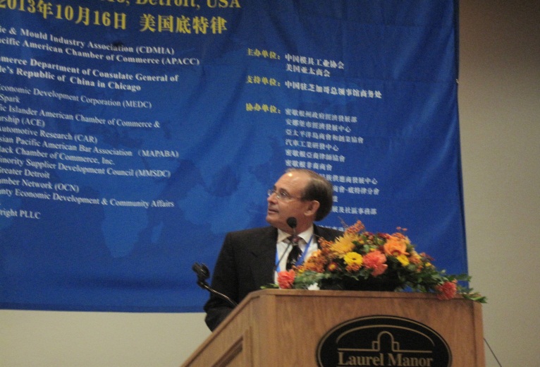 2013年10月16日10點(diǎn),中美汽車(chē)模具技術(shù)交流會(huì )正式舉行,出席會(huì )議的美方嘉賓有美國亞太商會(huì )主席Ron Shahani先生、Grace Lee副主席/會(huì )長(cháng)、美國密歇根州政府經(jīng)濟發(fā)展署Mark Kinsler副署長(cháng),美方協(xié)辦單位的負責人等,中方嘉賓代表有中國模具工業(yè)協(xié)會(huì )名譽(yù)會(huì )長(cháng)褚克辛、常務(wù)副會(huì )長(cháng)兼秘書(shū)長(cháng)武兵書(shū)、副會(huì )長(cháng)吳國峰,以及參加這次會(huì )議的中國模具重點(diǎn)骨干企業(yè)一汽模具制造有限公司、成飛集成科技股份有限公司、深圳銀寶山新模具有限公司、深圳群達模具公司等二十五家公司和地方模具協(xié)會(huì )的代表,美方有來(lái)自福特汽車(chē)、克萊斯勒汽車(chē)、通用汽車(chē)公司、加拿大麥格納公司以及各汽車(chē)零部件公司、模具公司以及相關(guān)公司和服務(wù)機構的采購商、技術(shù)專(zhuān)家和管理人員等共250人出席了會(huì )議。會(huì )議由美國亞太商會(huì )Richard Yan董事主持,美國亞太商會(huì )主席Ron Shahani致歡迎詞,熱情的歡迎來(lái)自中美雙方各界的參會(huì )代表,美國亞太商會(huì )Grace Lee副主席/會(huì )長(cháng)介紹了到會(huì )的各位嘉賓。之后,中美汽車(chē)、模具行業(yè)的資深專(zhuān)家作了演講。