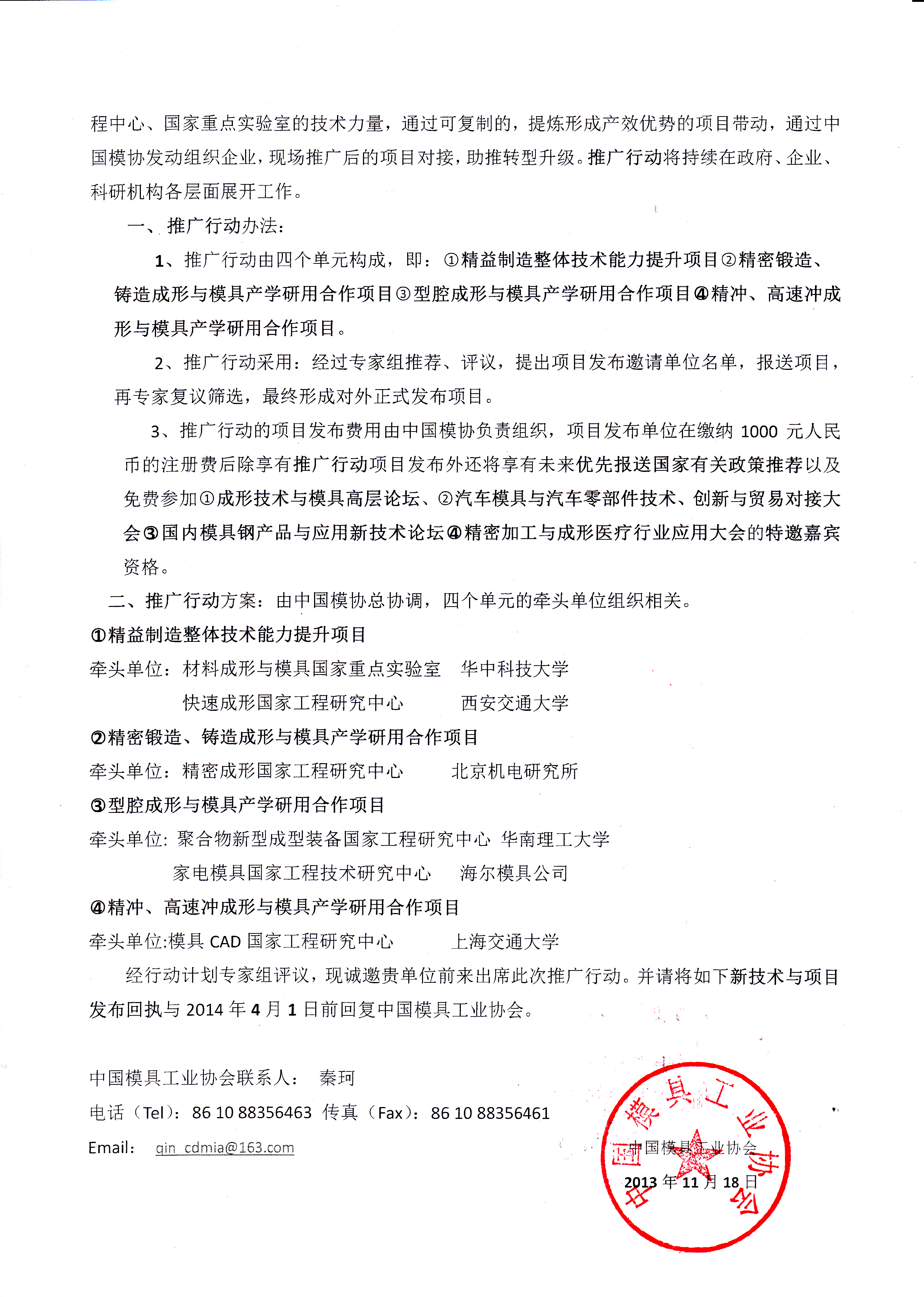 2014精益制造與成形新技術(shù)項目發(fā)布推廣行動(dòng)邀請函