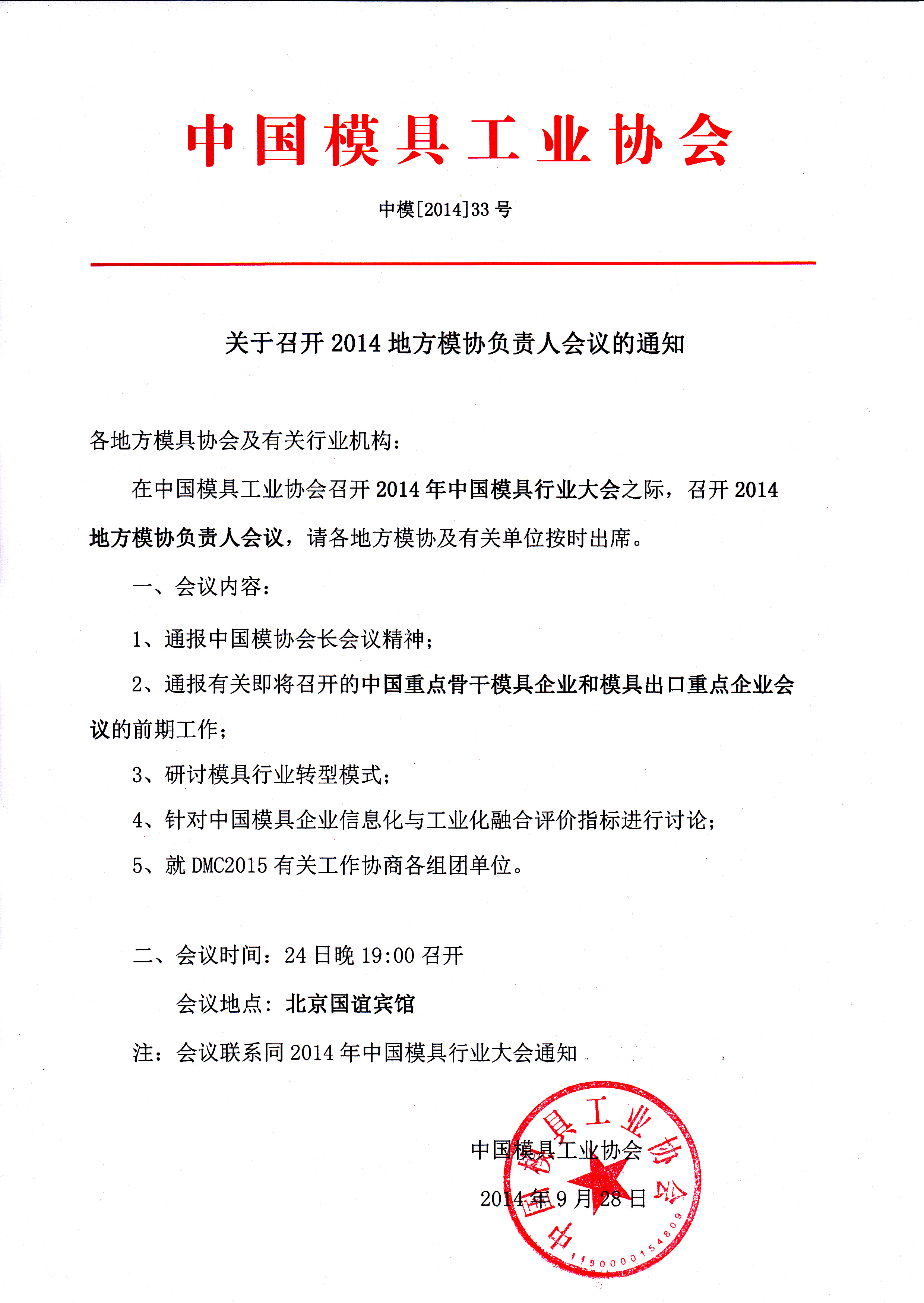 關(guān)于召開(kāi)2014地方模協(xié)負責人會(huì )議的通知