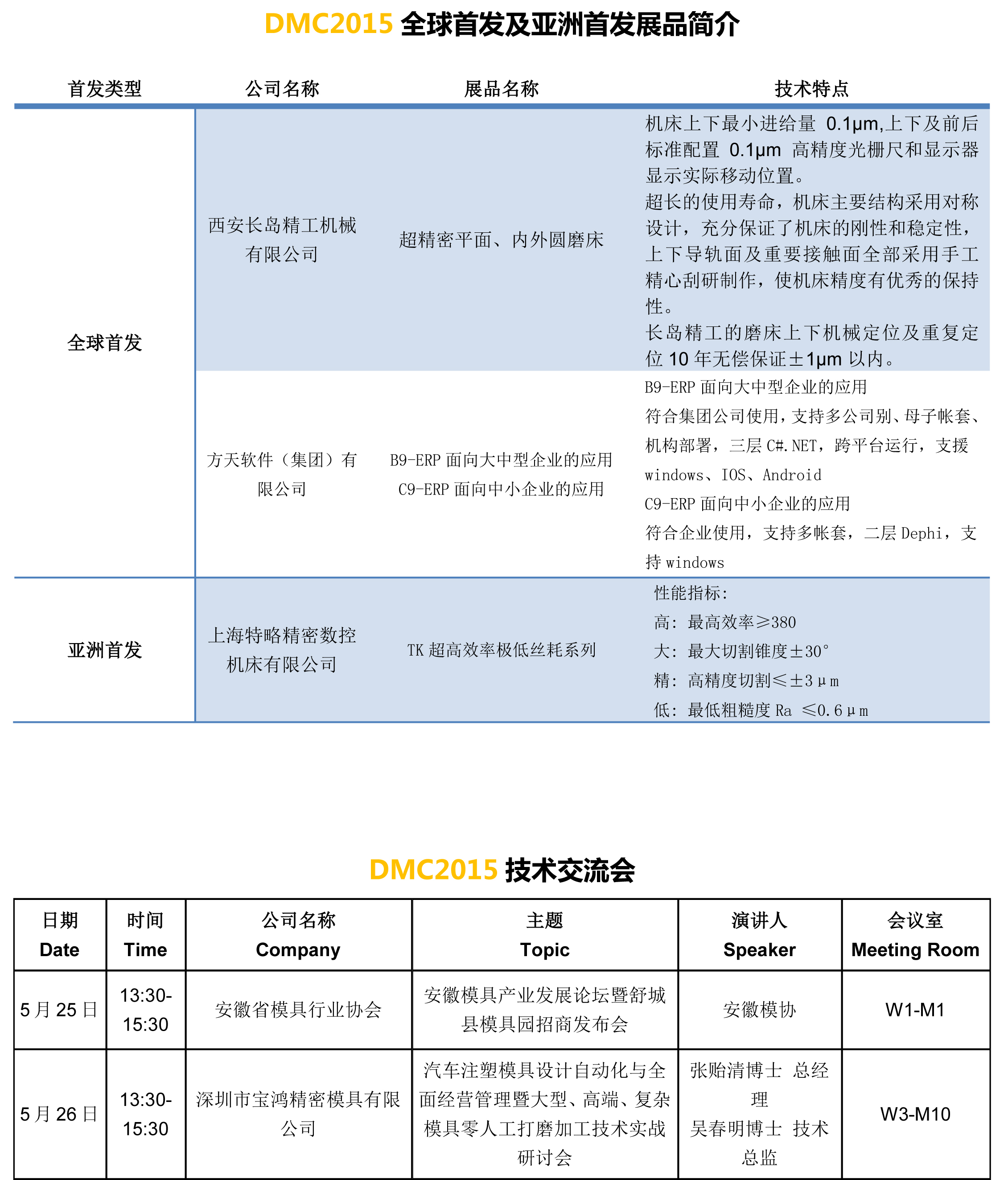DMC2015全球首發(fā)及亞洲首發(fā)展品簡(jiǎn)介、技術(shù)交流會(huì )