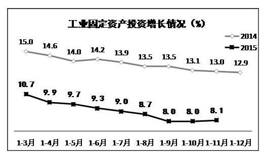 2015年1-11月工業(yè)投資增速逐步企穩