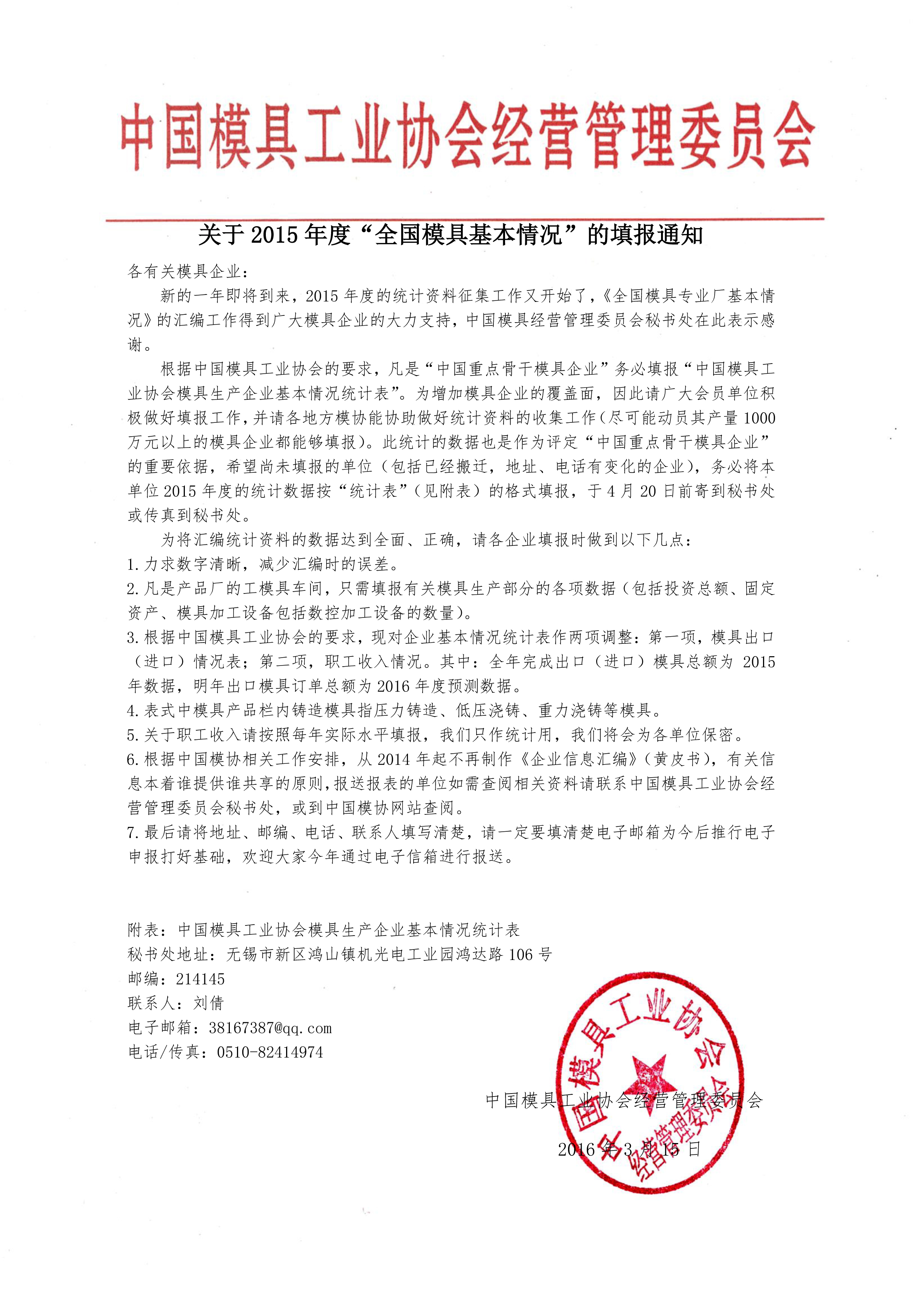 關(guān)于2015年度“全國模具基本情況”的填報通知