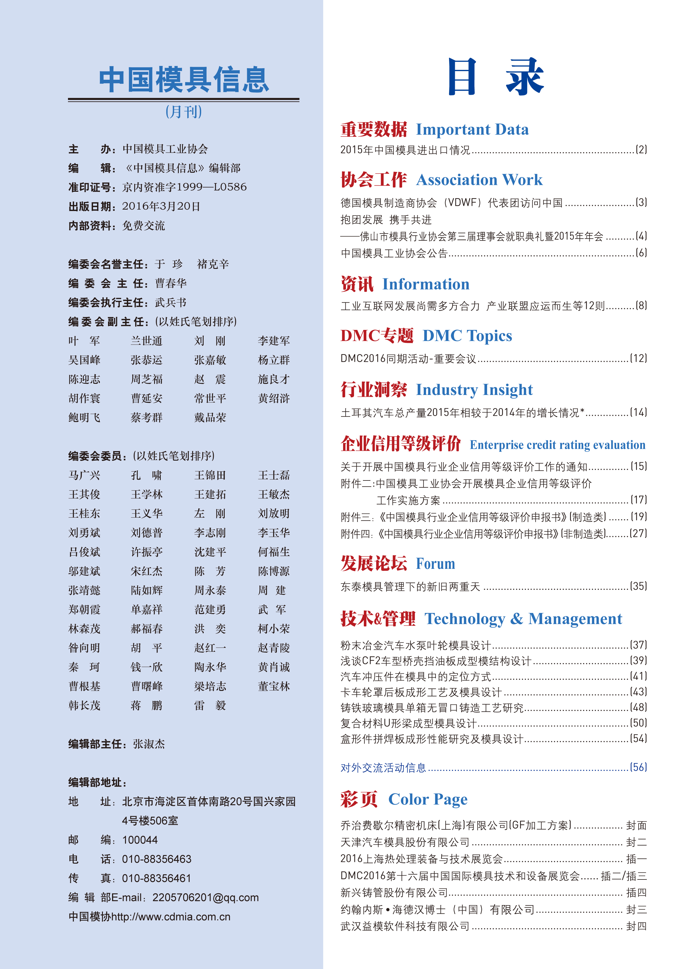 中國模具信息2016年第三期目錄