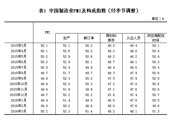 中國經(jīng)濟網(wǎng)北京4月1日訊 今天,國家統計局發(fā)布3月份制造業(yè)數據,數據顯示,3月中國制造業(yè)采購經(jīng)理指數(PMI)為50.2%,比上月上升1.2個(gè)百分點(diǎn),重回擴張區間?!?/span>