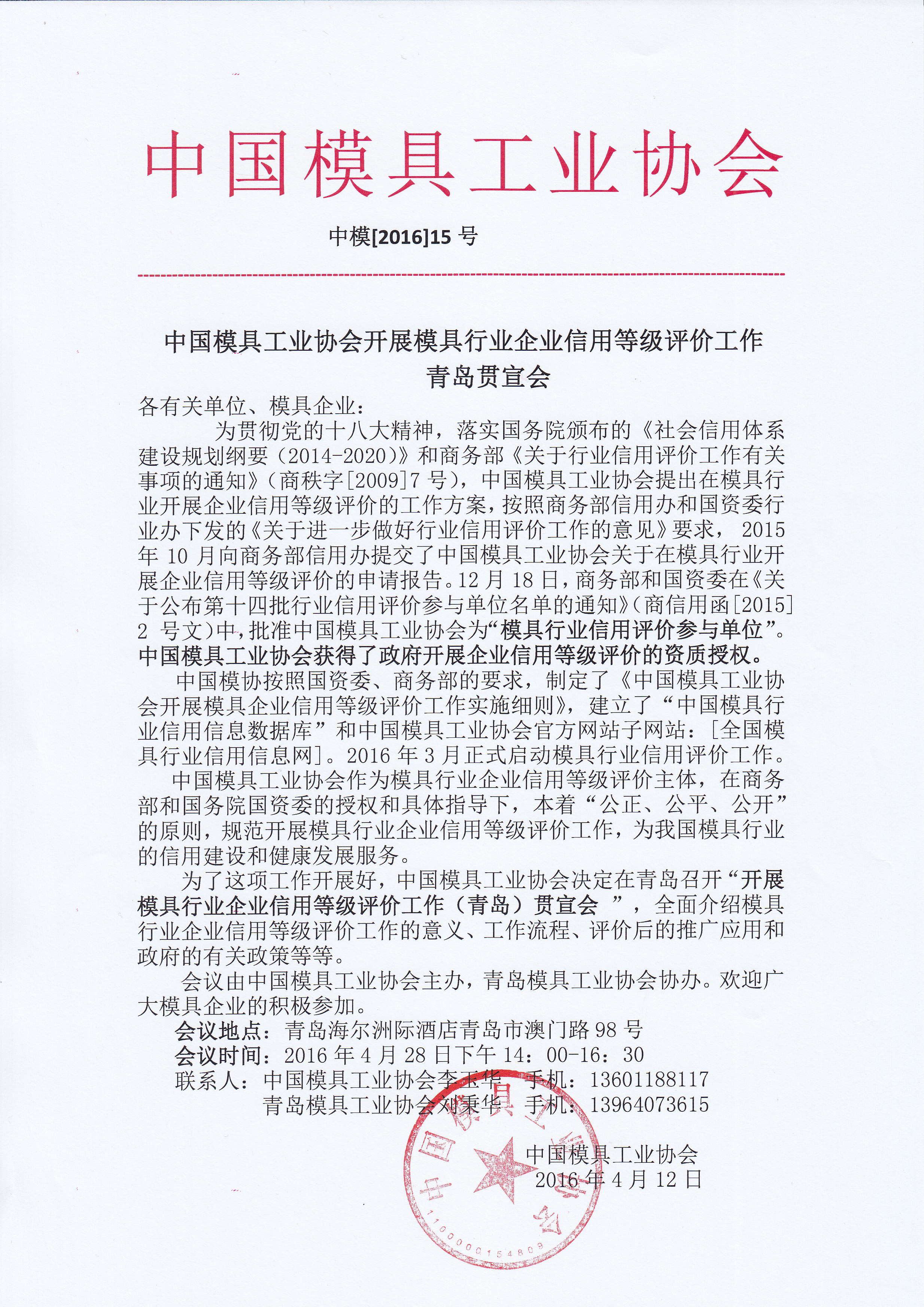 中國模具工業(yè)協(xié)會(huì )開(kāi)展模具行業(yè)企業(yè)信用等級評價(jià)工作青島貫宣會(huì )