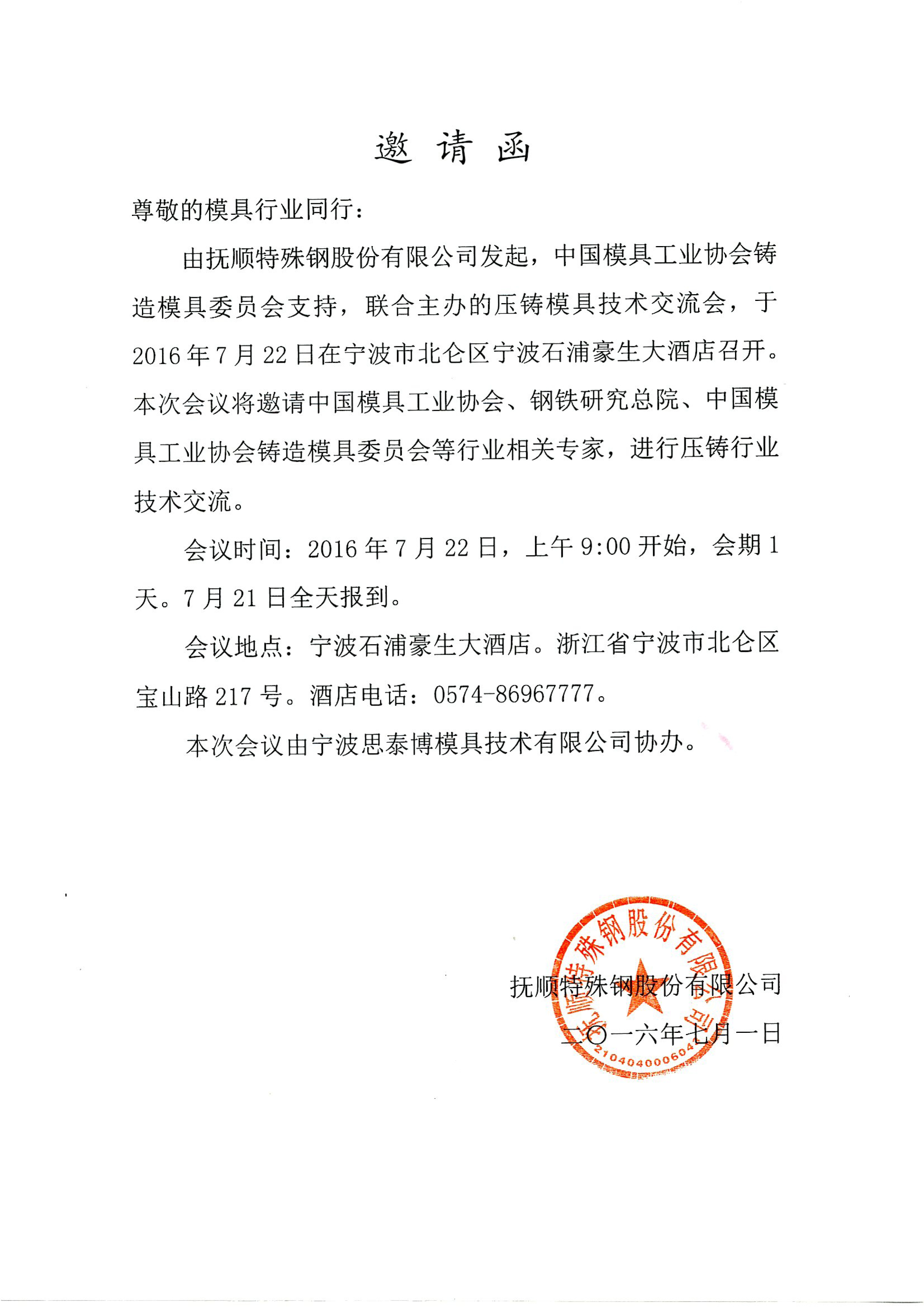 壓鑄模具技術(shù)交流會(huì )邀請函