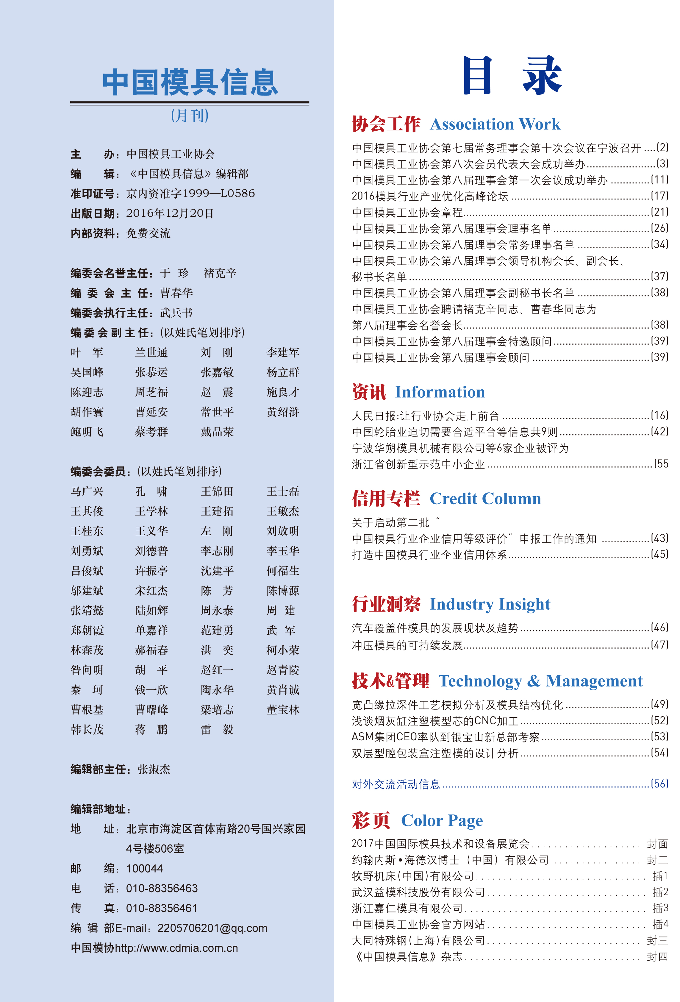 中國模具信息2016年第十二期目錄