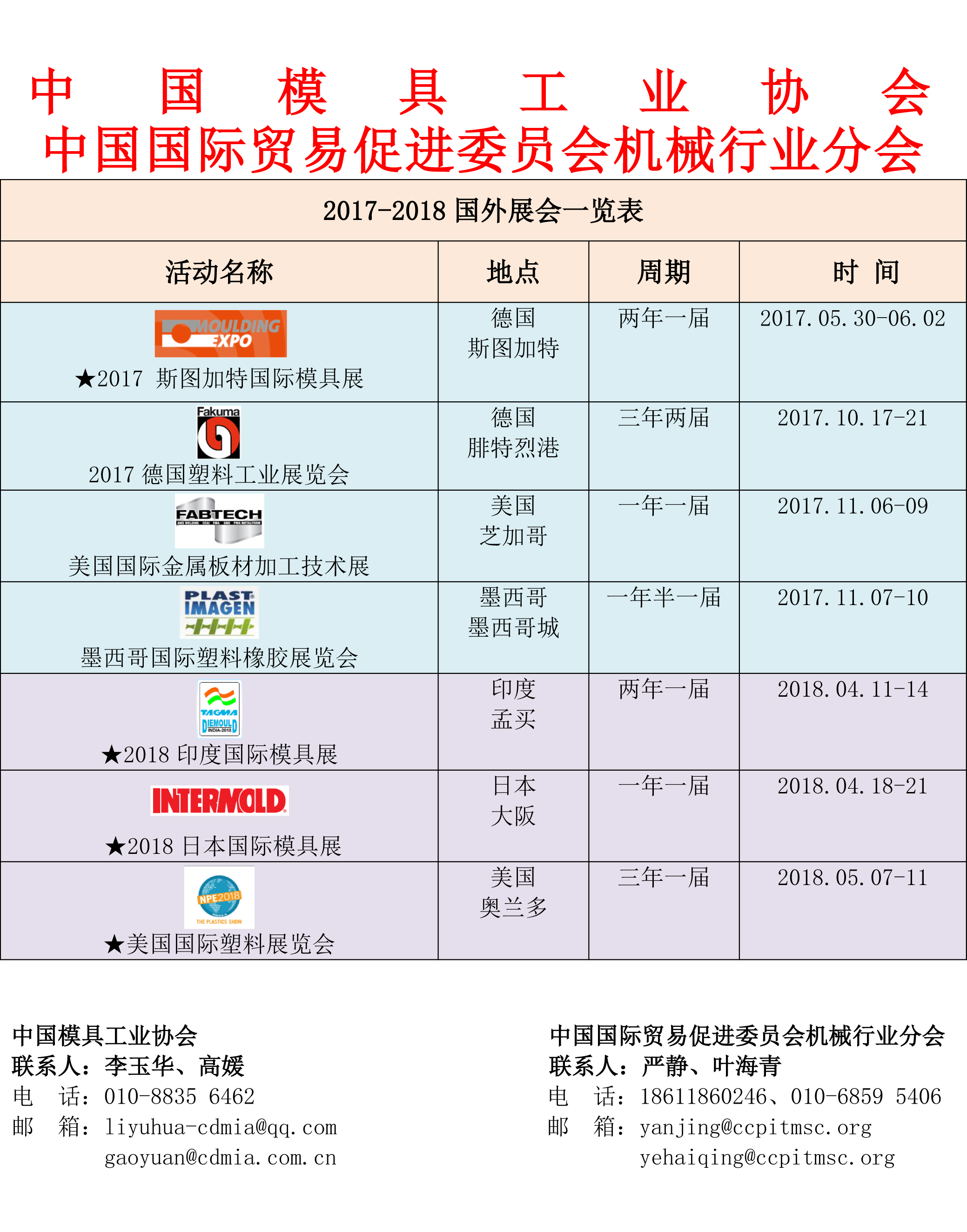 2017-2018國外展會(huì )一覽表