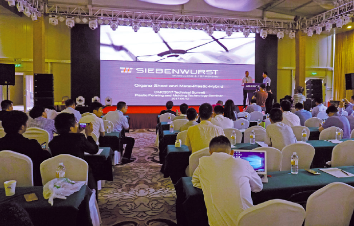 來(lái)自Siebenwurst公司的經(jīng)理、注塑模具專(zhuān)家Torsten Kersting先生以“復合模具——有機纖維與注塑工藝的結合”和“國際纖維復合材料的成型工藝(纖維矩陣半成品)(飛機或高端車(chē)型輕量化)應用”兩個(gè)主題系統闡述了七福模具集團的模內成型技術(shù)、有機片應用實(shí)例、輕量化模具技術(shù)應用、金屬注塑復合模具實(shí)例。