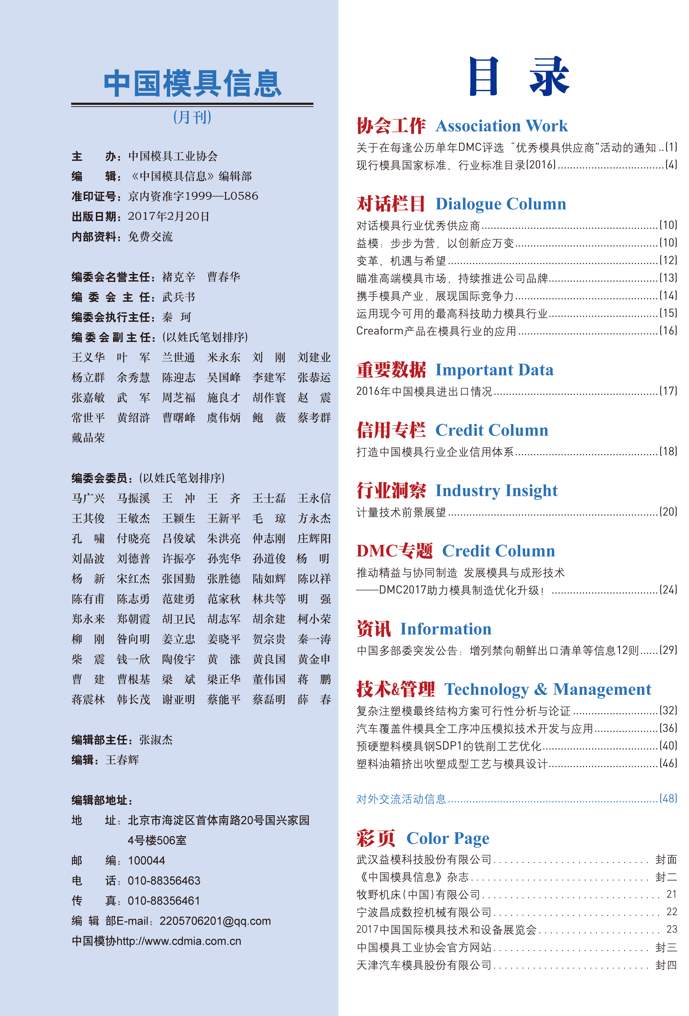 中國模具信息2017年第二期目錄