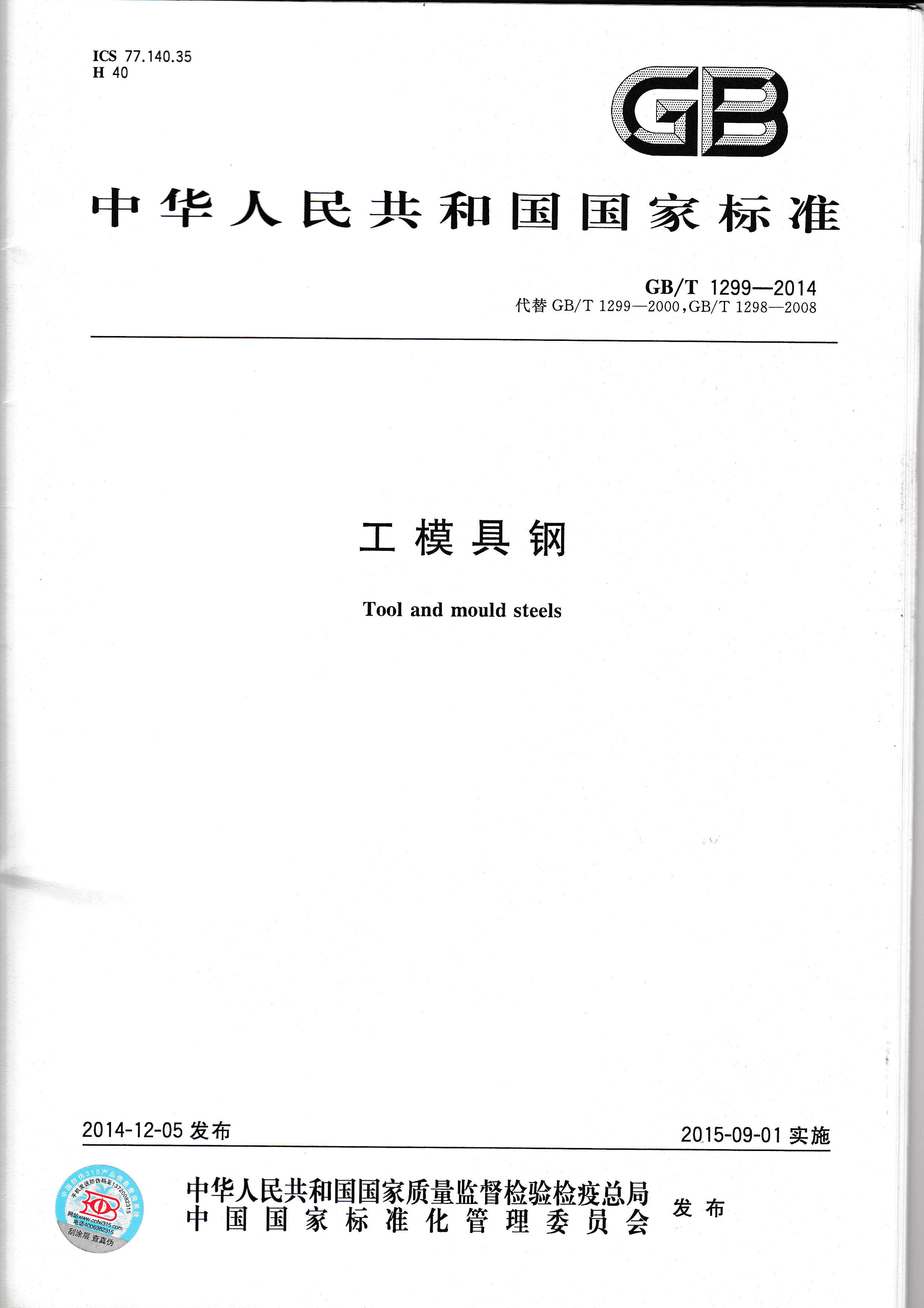 GB/T 1299-2014工模具鋼 國家標準