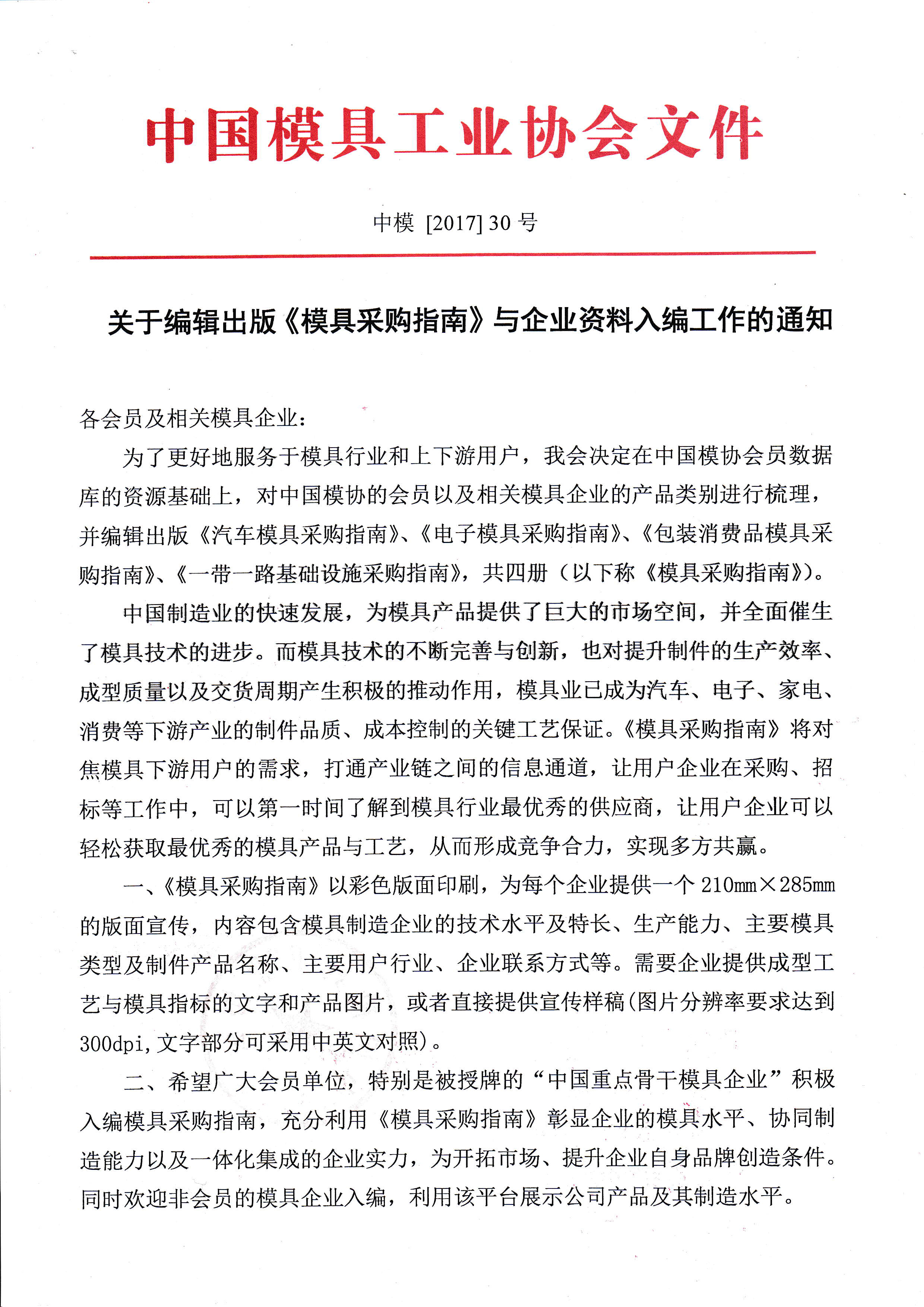 關(guān)于編輯出版《模具采購指南》與企業(yè)資料入編工作的通知