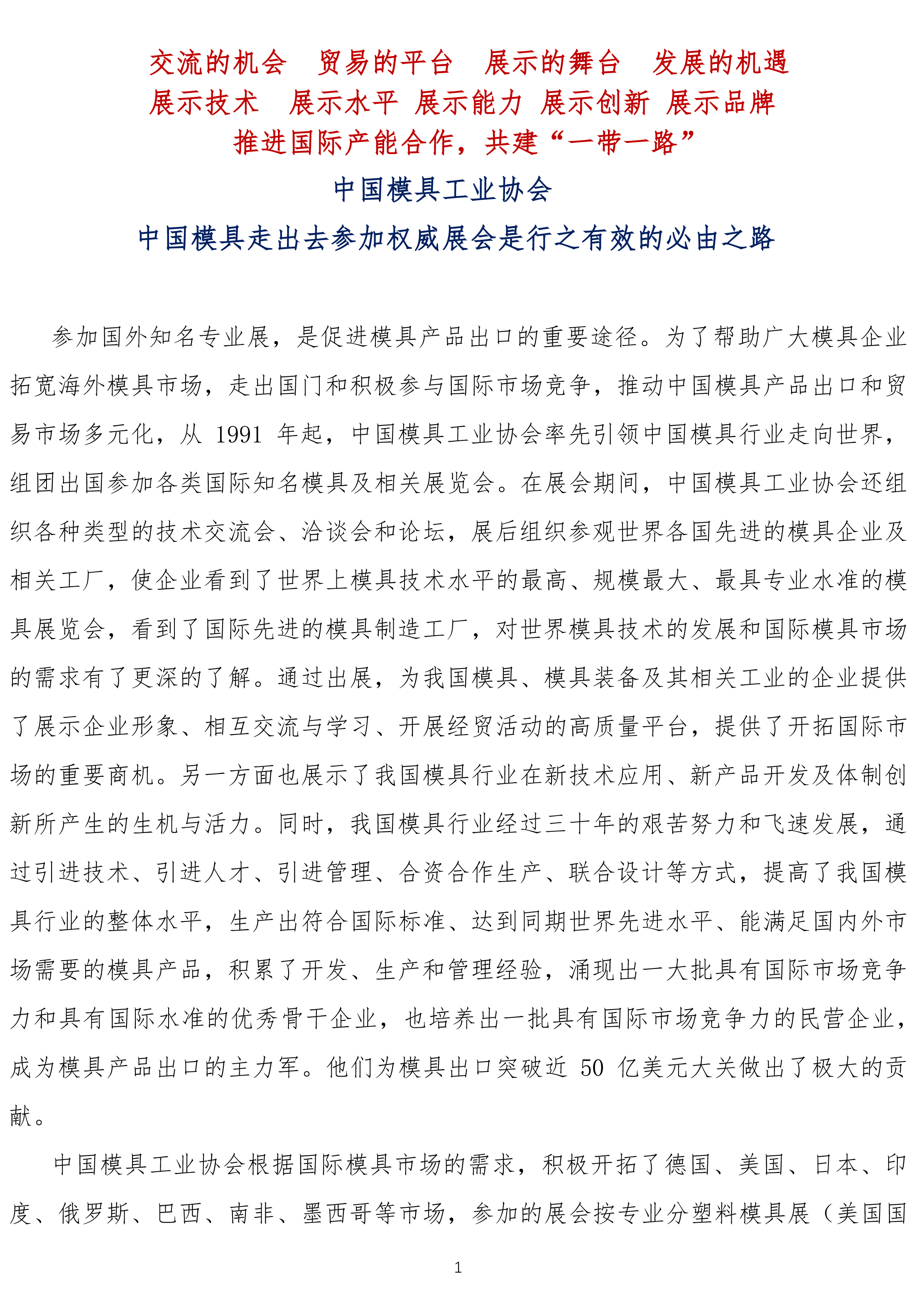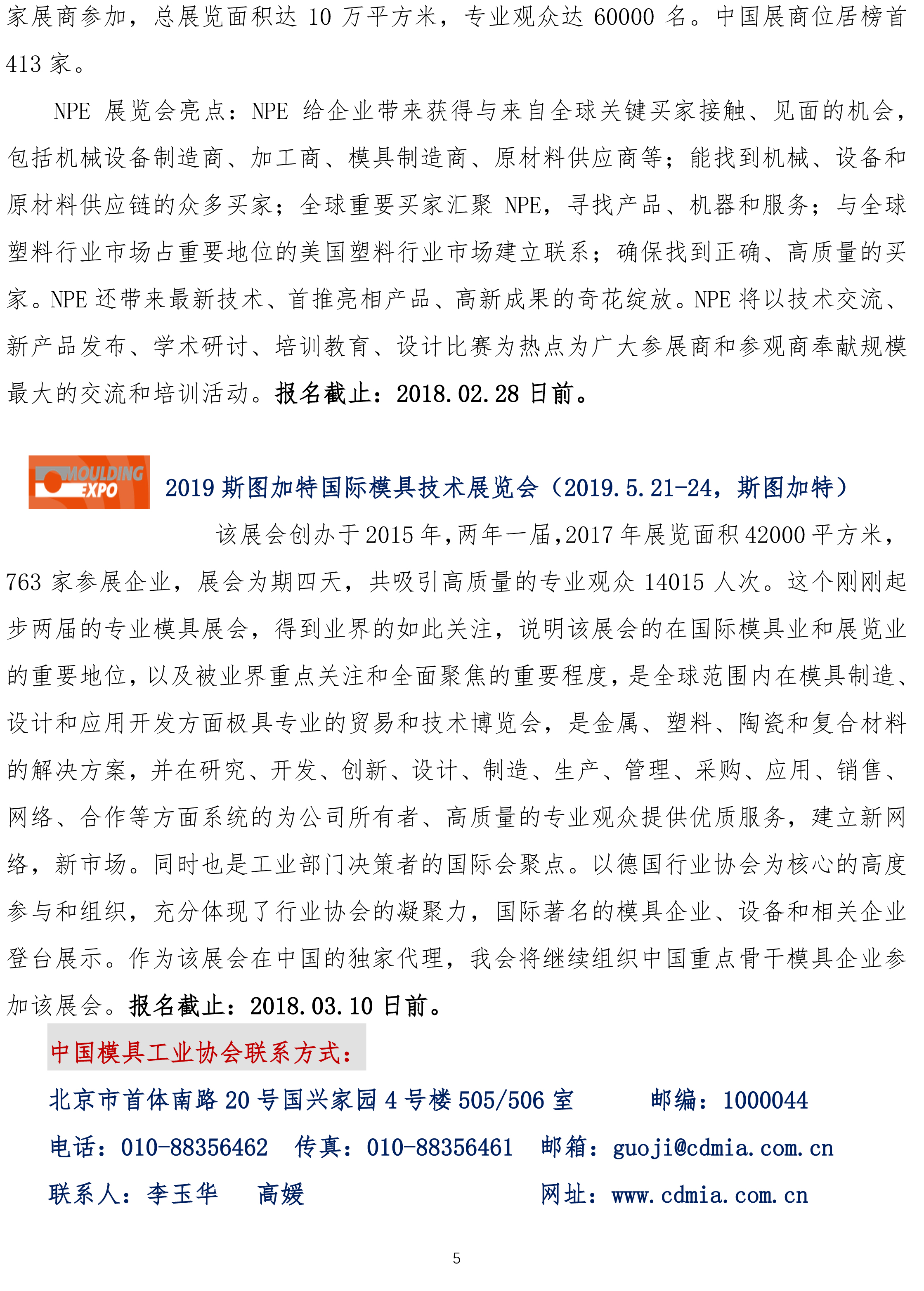 2018年中國模具工業(yè)協(xié)會(huì )組團參加國際著(zhù)名模具及相關(guān)展覽會(huì )介紹