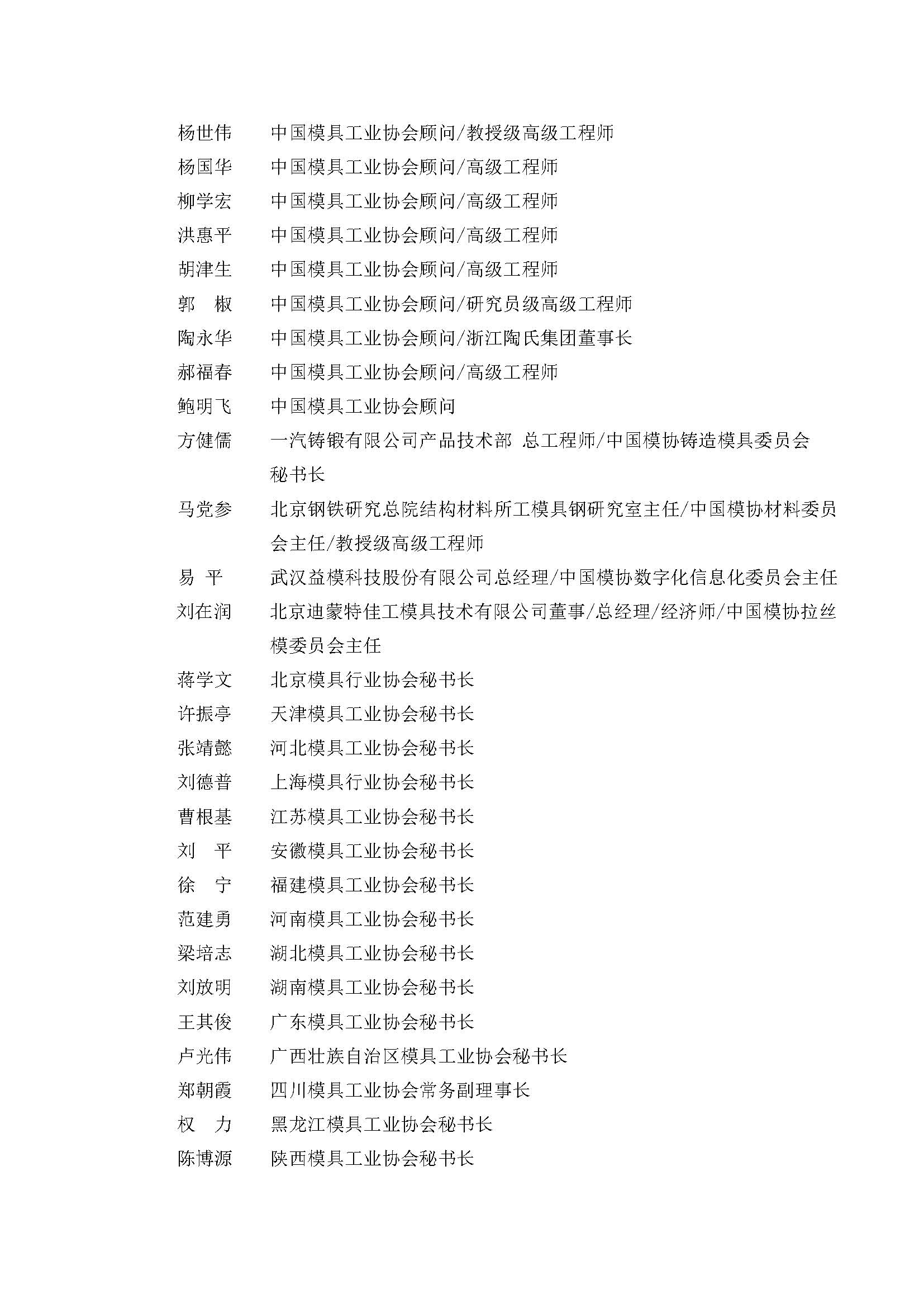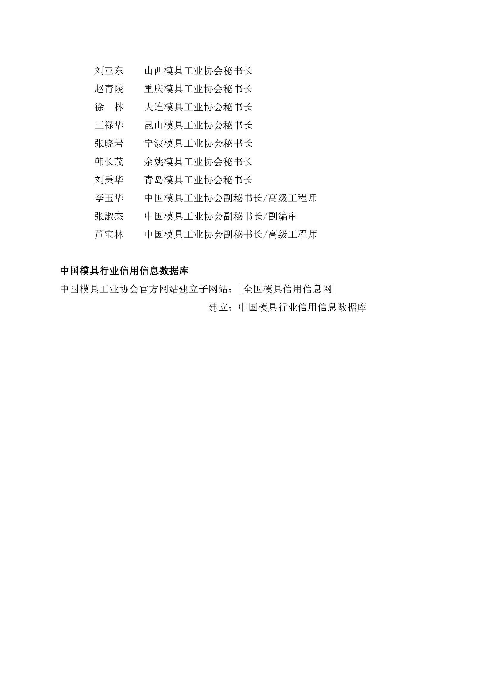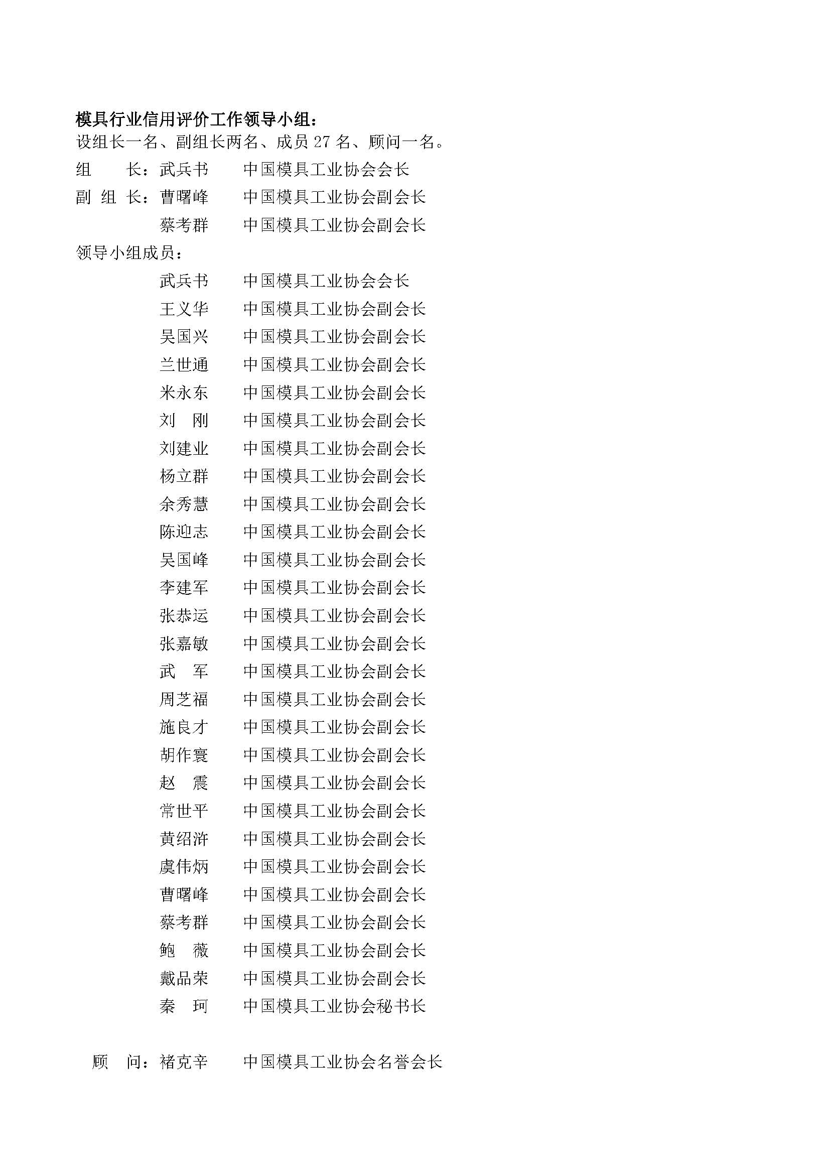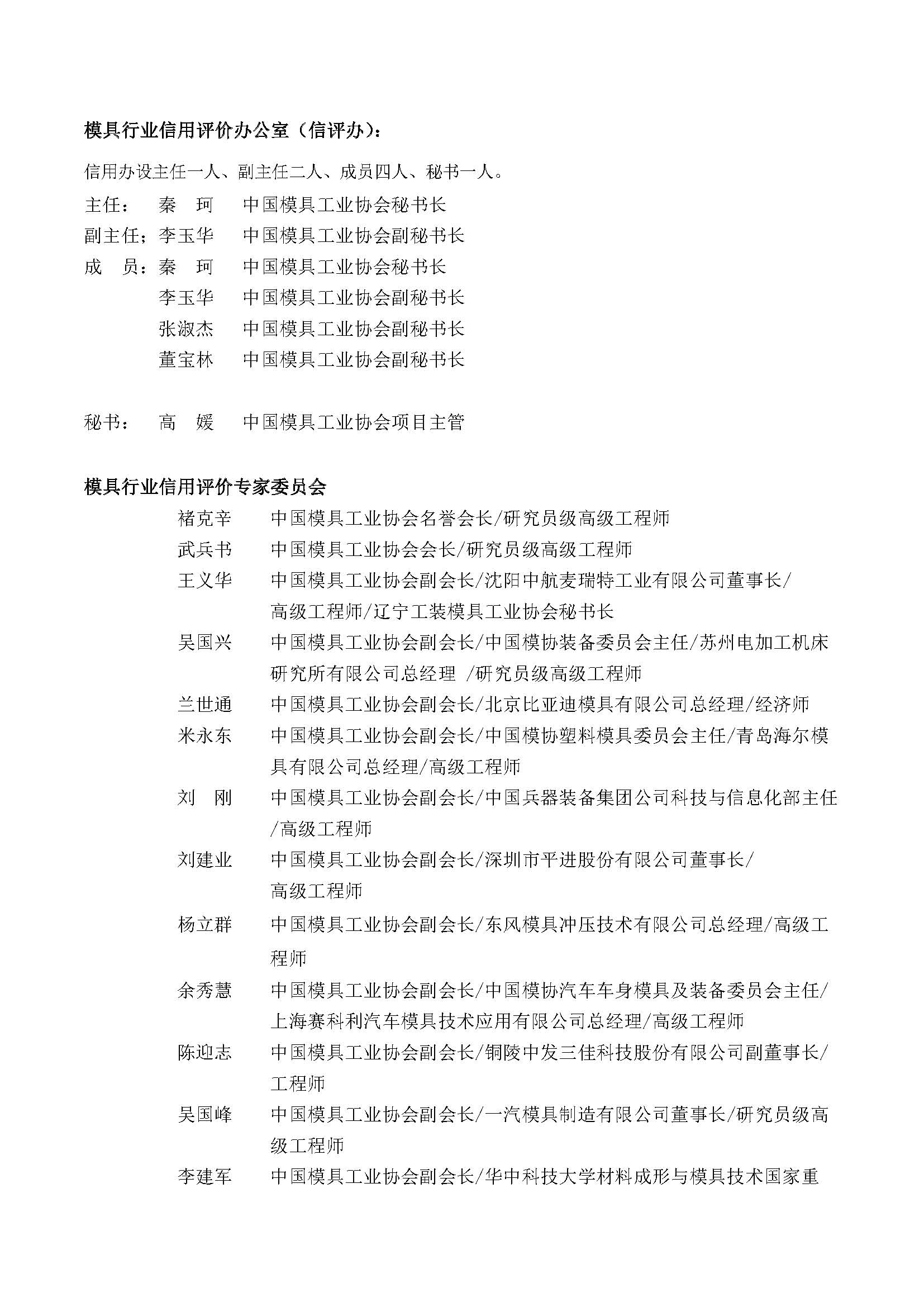 模具行業(yè)信用評價(jià)工作組織機構名單