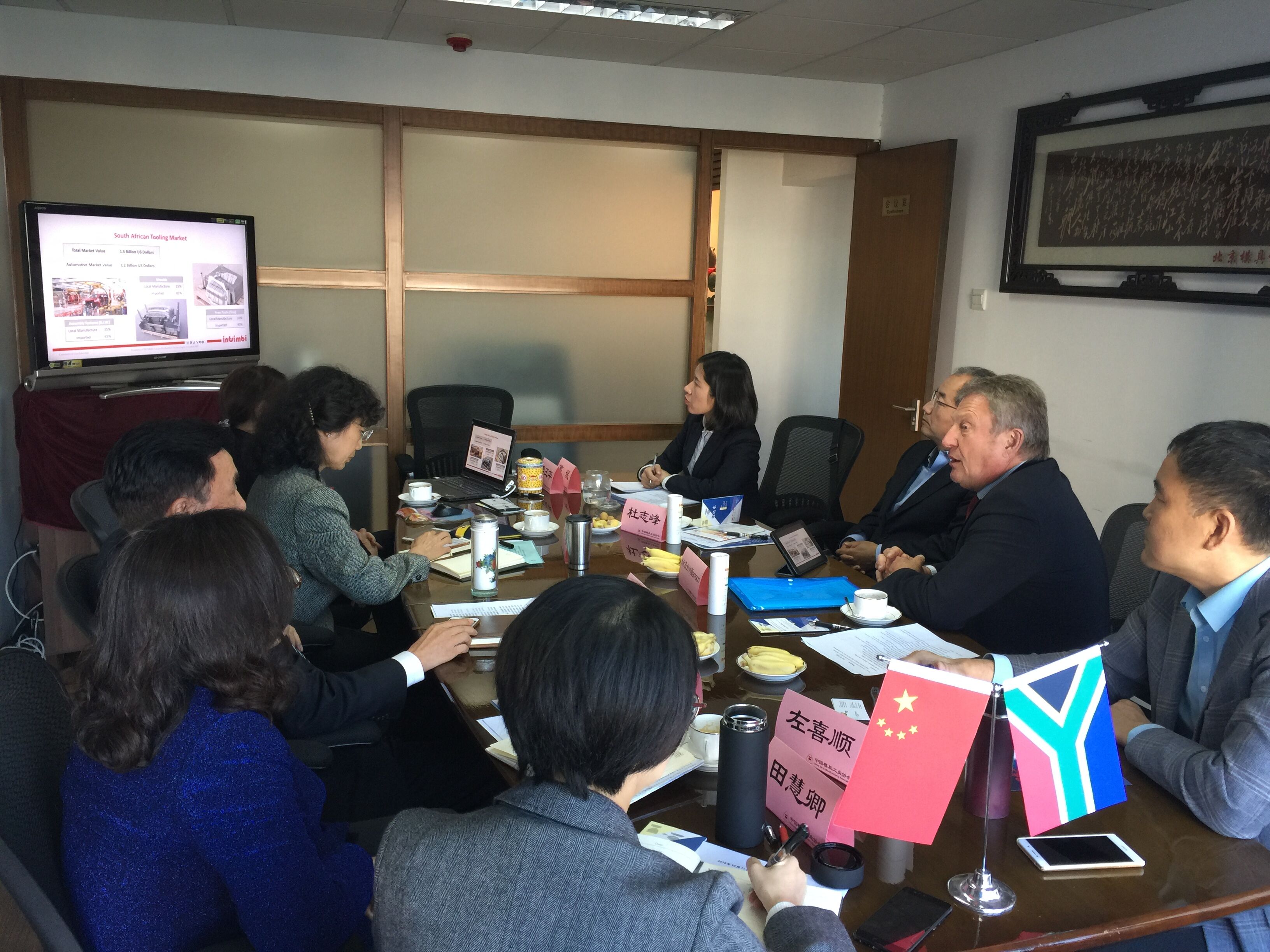 Mr.Bob主席較全面介紹了南非汽車(chē)工業(yè)有關(guān)產(chǎn)量和工具需求的現狀以及北汽中國的投資情況。積極倡議與中國模協(xié)開(kāi)展模具產(chǎn)業(yè)及相關(guān)聯(lián)產(chǎn)業(yè)的多方合作,以支持南非汽車(chē)產(chǎn)業(yè)發(fā)展,特別是新進(jìn)投資的北汽控股在南非的基地汽車(chē)焊裝線(xiàn)、涂裝線(xiàn)、總裝線(xiàn)的情況交流,也是本次會(huì )談?dòng)懻摵罄m中國模具參與可能性的研討。
