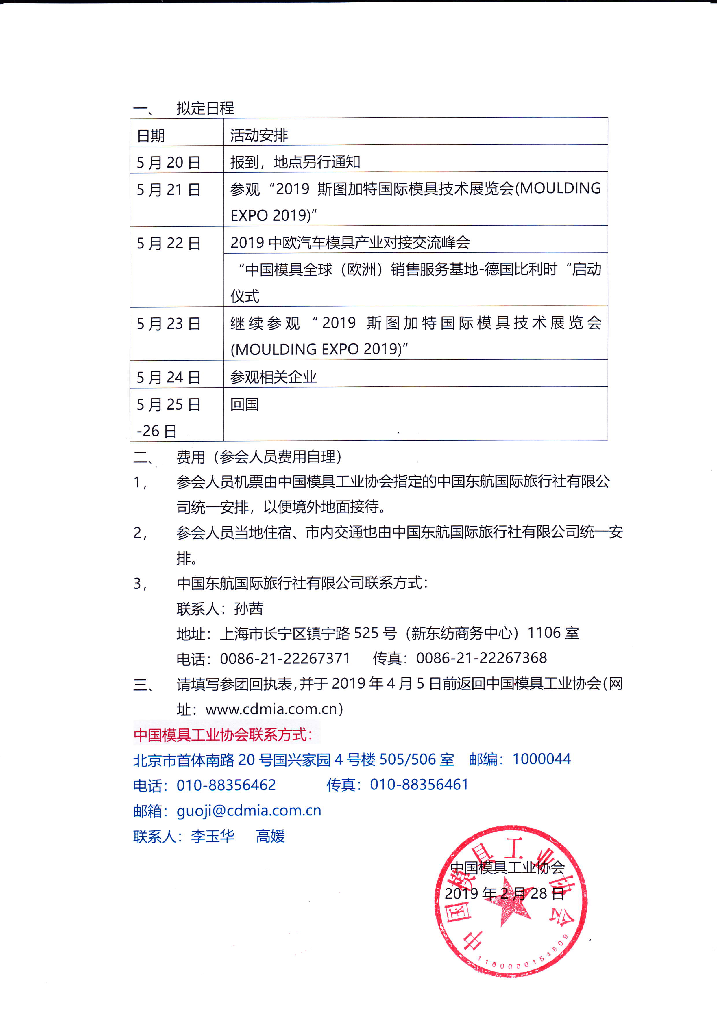 關(guān)于邀請參加2019年中歐汽車(chē)模具產(chǎn)業(yè)對接交流峰會(huì )的通知