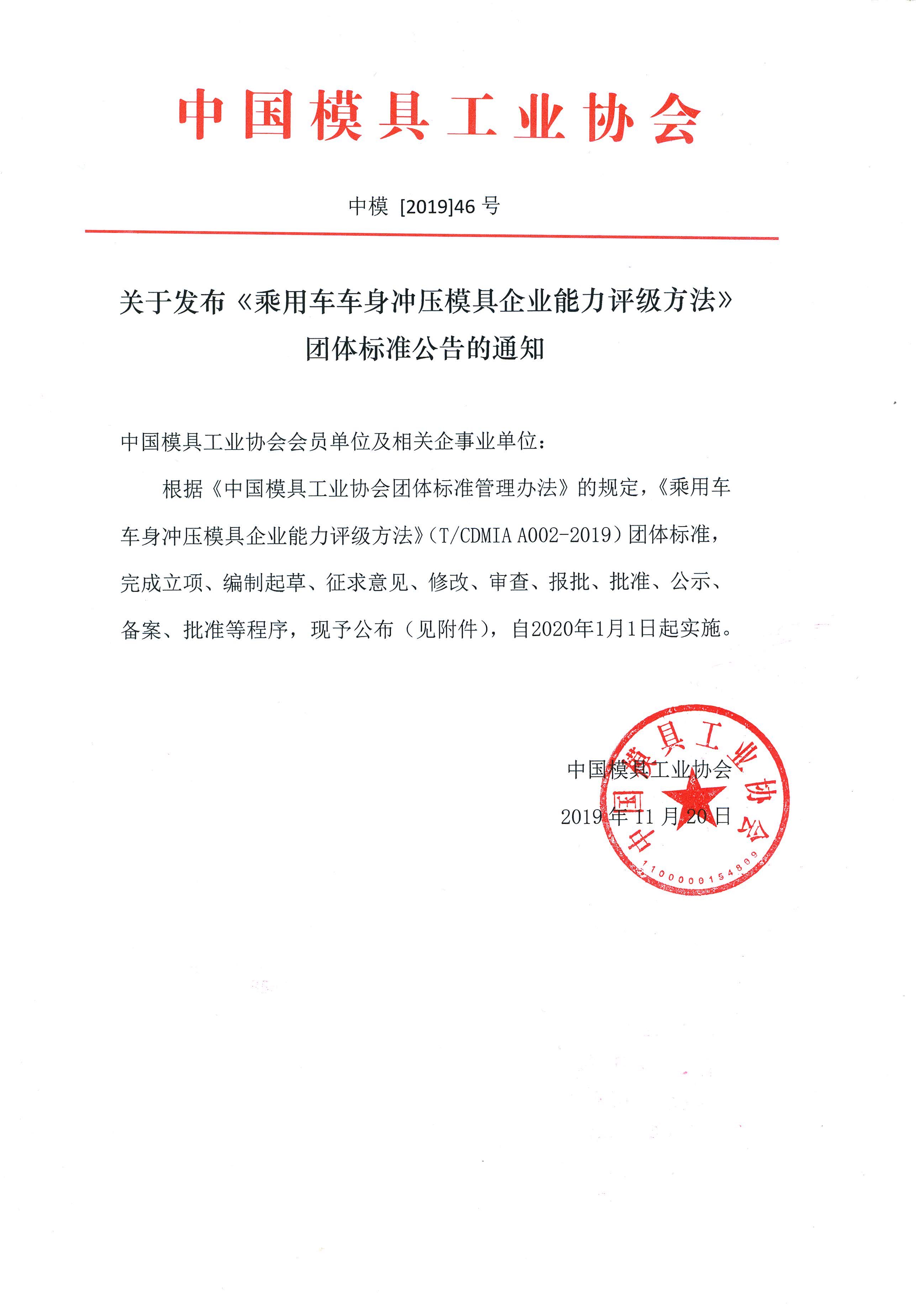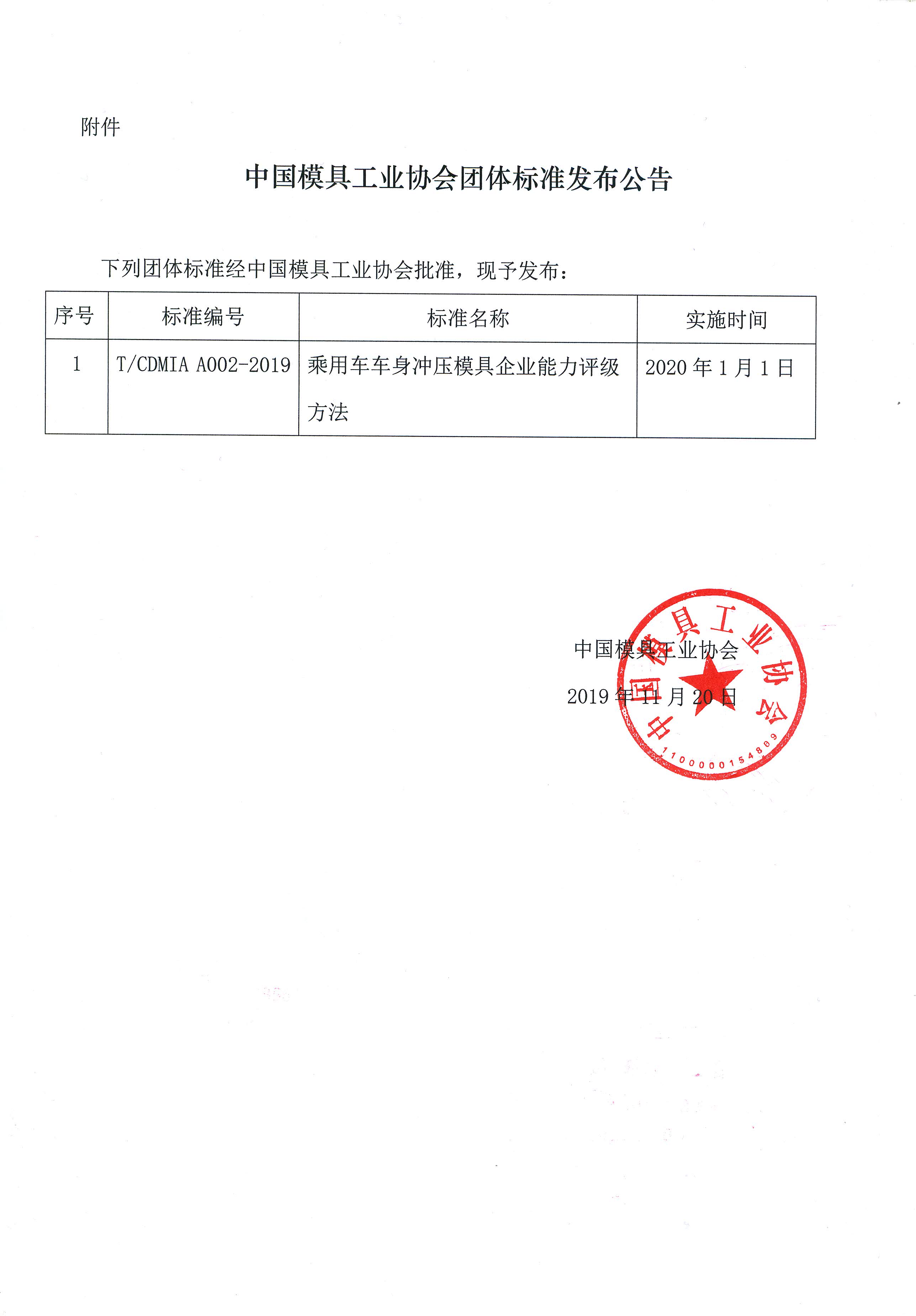 關(guān)于發(fā)布《乘用車(chē)車(chē)身沖壓模具企業(yè)能力評級方法》團體標準公告的通知