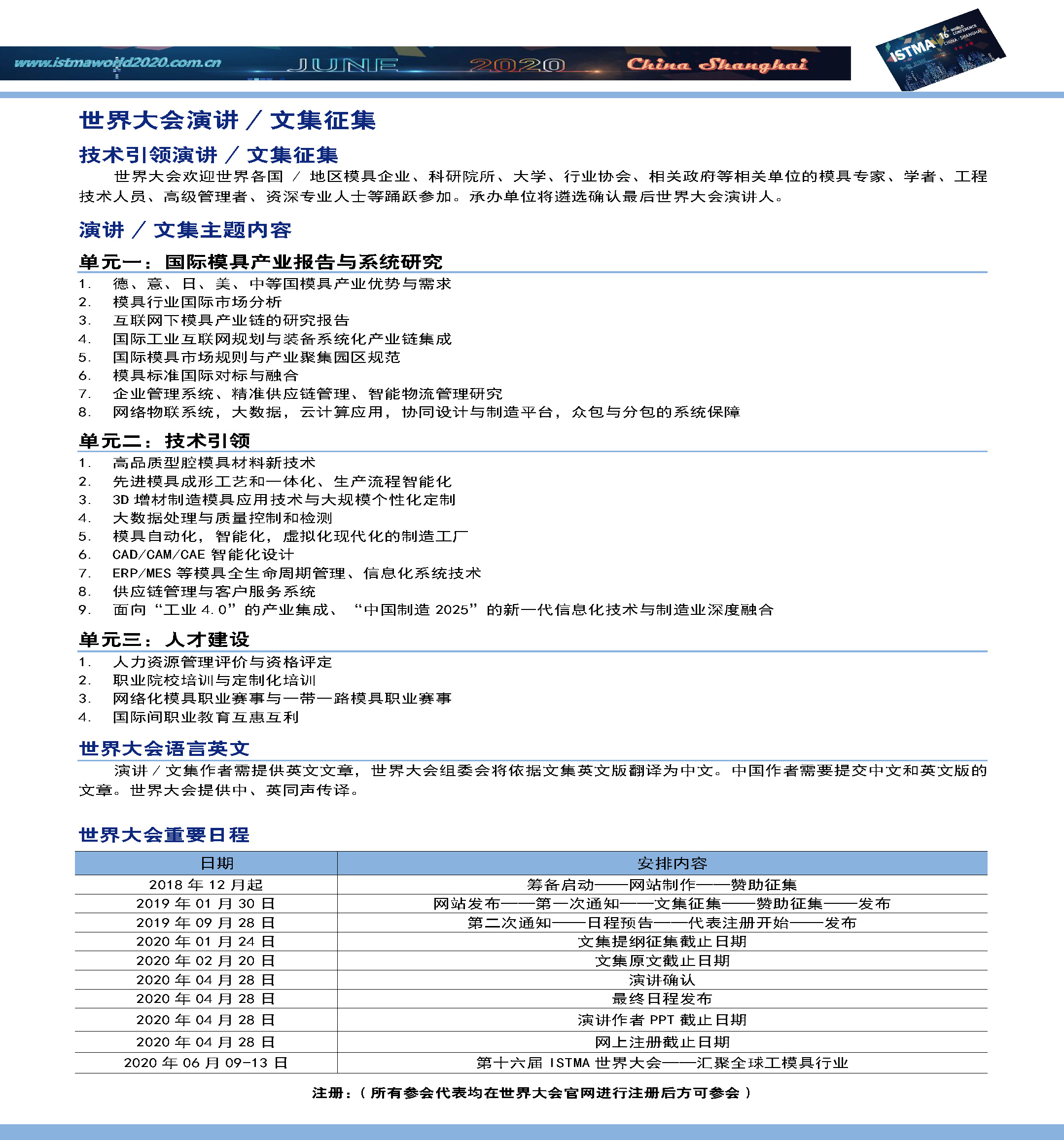 第十六屆ISTMA世界大會(huì )——匯聚全球工模具行業(yè) 文集、注冊邀請