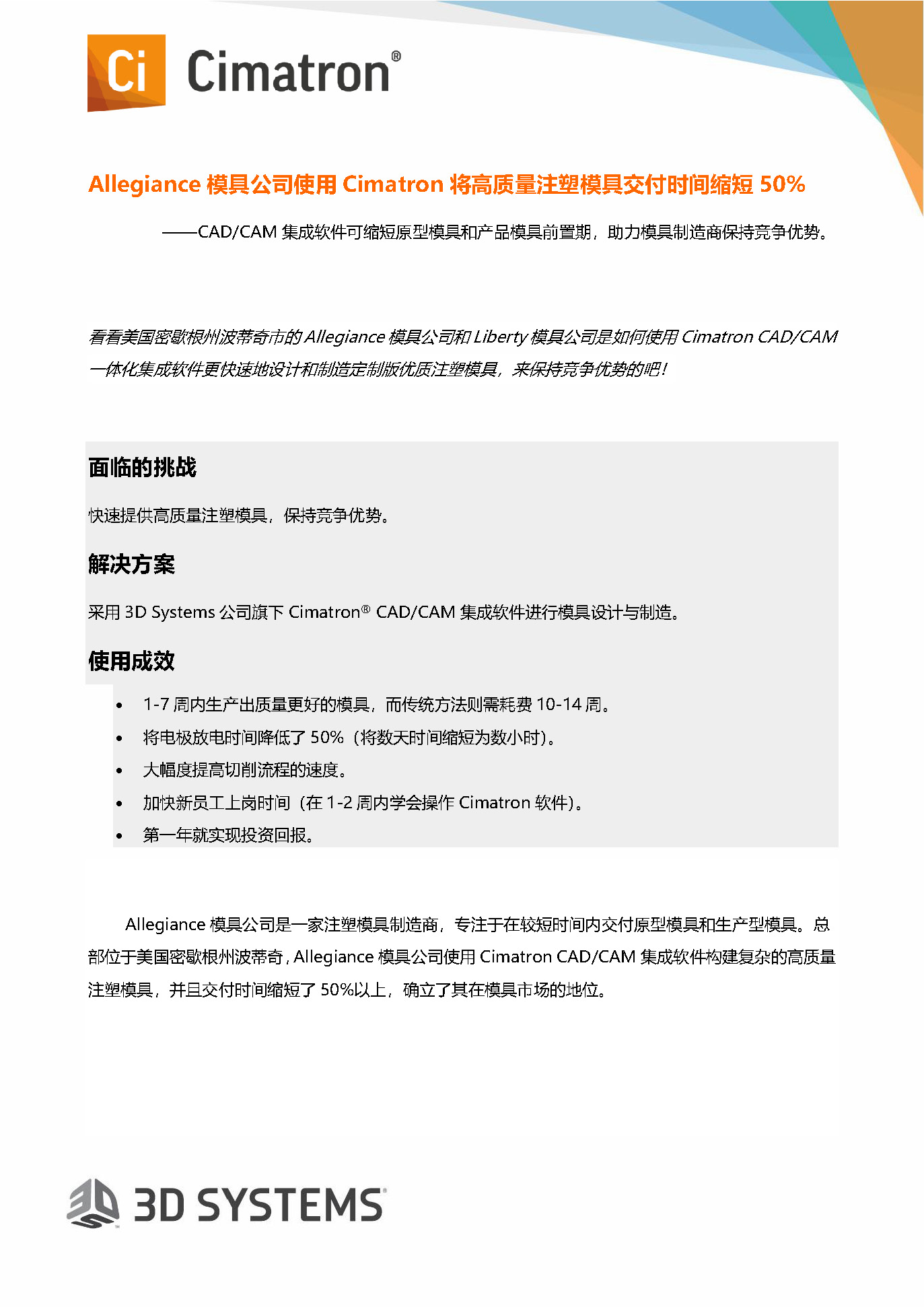 Allegiance模具公司使用Cimatron將高質(zhì)量注塑模具交付時(shí)間縮短50%