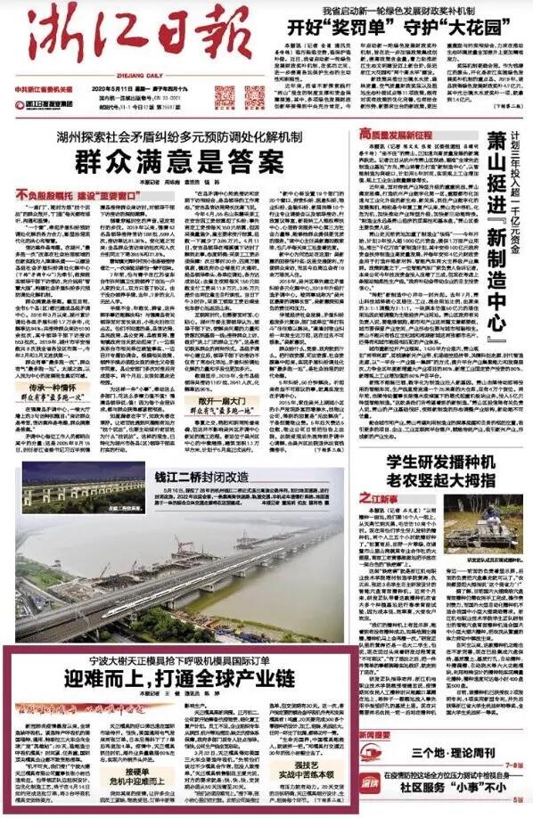 “機不可失,我們接!”寧波大榭天正模具有限公司董事長(cháng)張小巖迅速響應。他帶領(lǐng)團隊邊組織設計,邊優(yōu)化制造工藝,靠多年磨礪的一身“好武藝”,搶進(jìn)度、摳細節,終于在4月14日如約完成這批美國訂單,將3臺呼吸機模具一并交貨給美方。