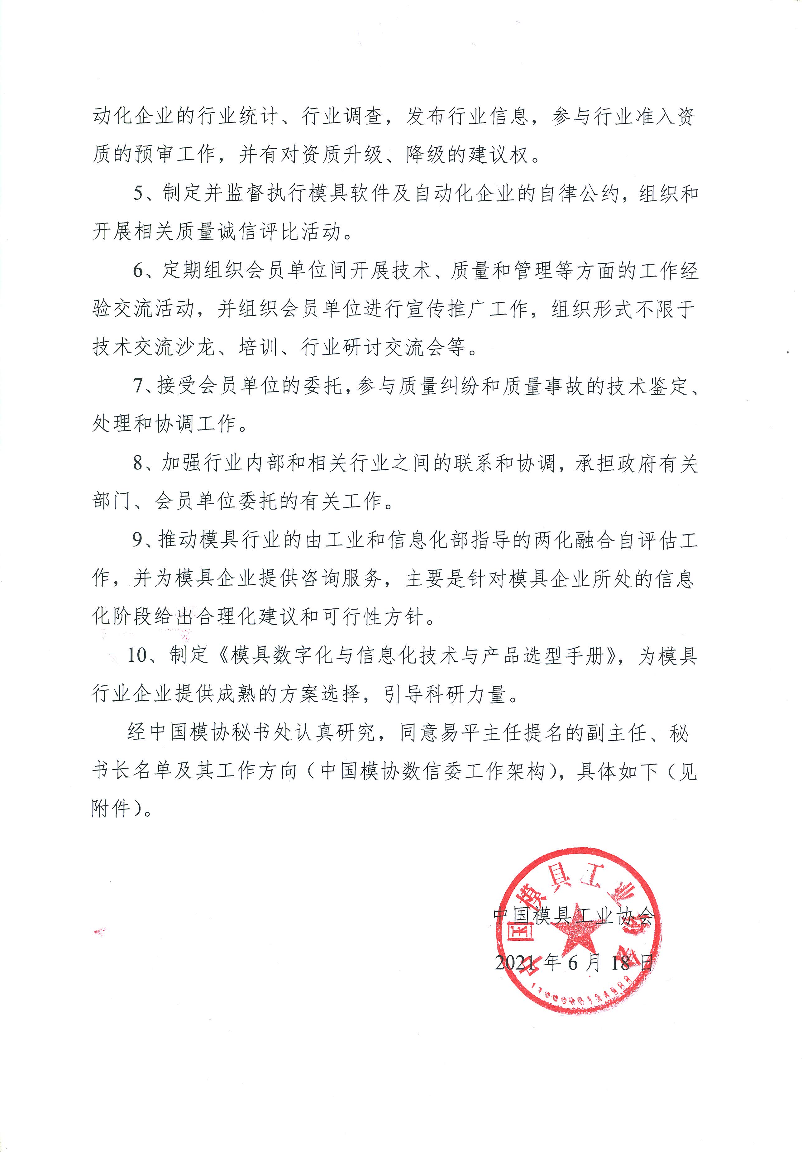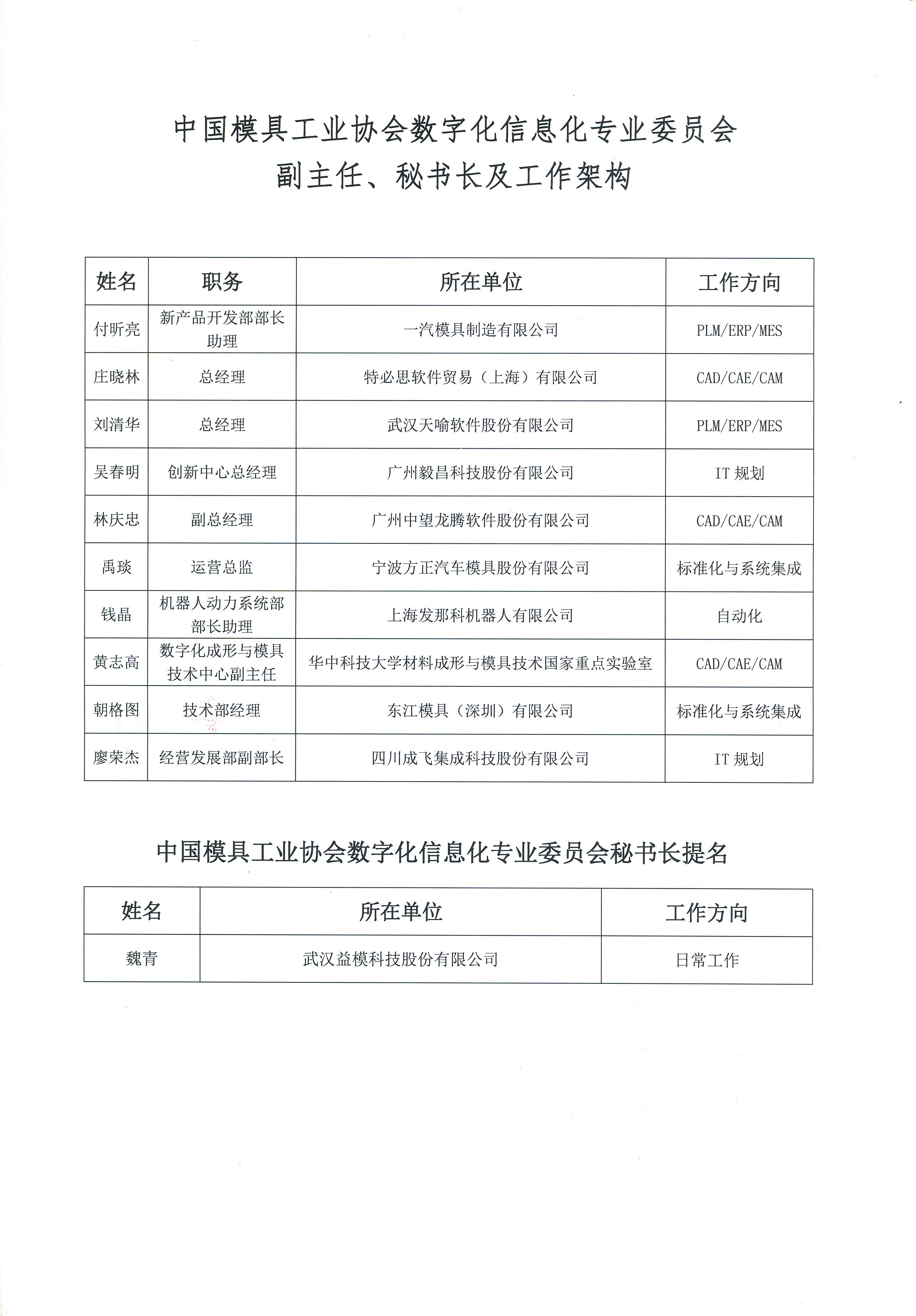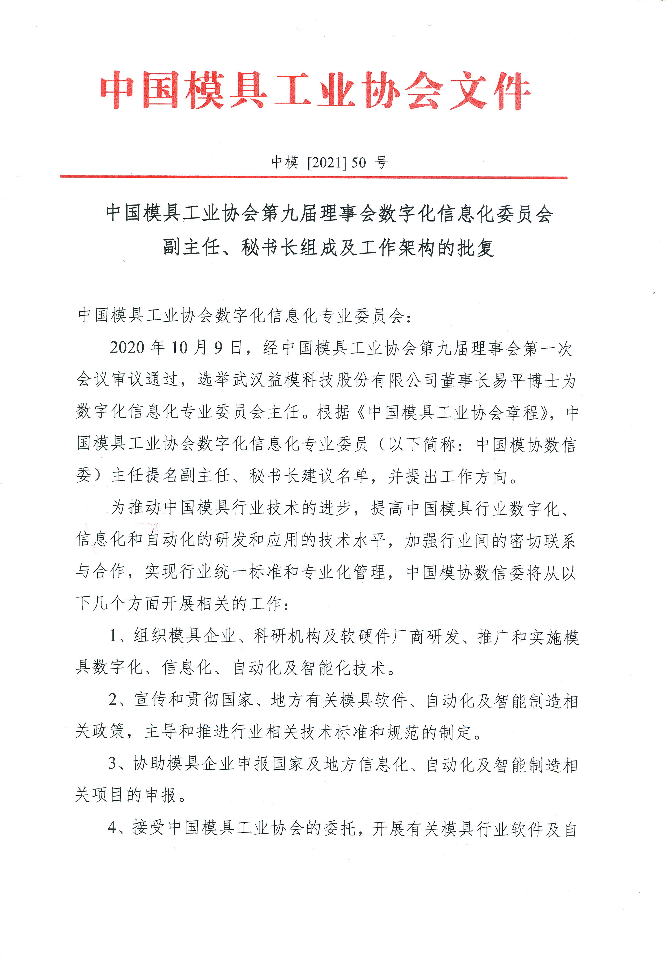 中國模協(xié)第九屆理事會(huì )數字化信息化委員會(huì )副主任、秘書(shū)長(cháng)組成及工作架構的批復