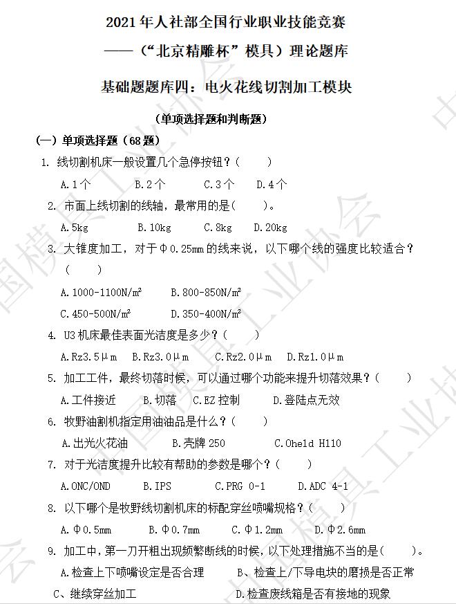 基礎題題庫:電火花加工模塊、電火花線(xiàn)切割加工模塊