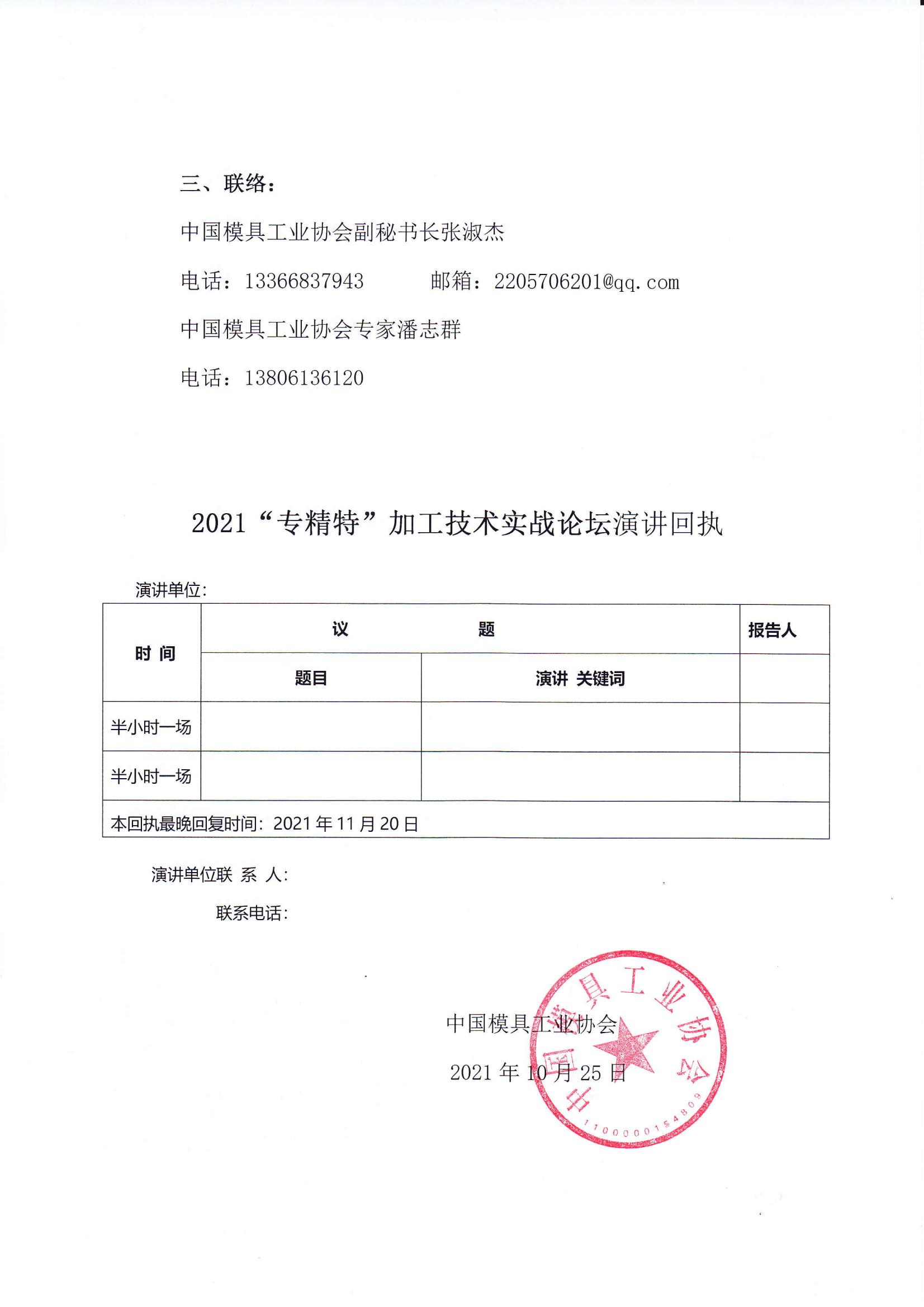 2021“專(zhuān)精特”加工技術(shù)實(shí)戰論壇議題征集的函