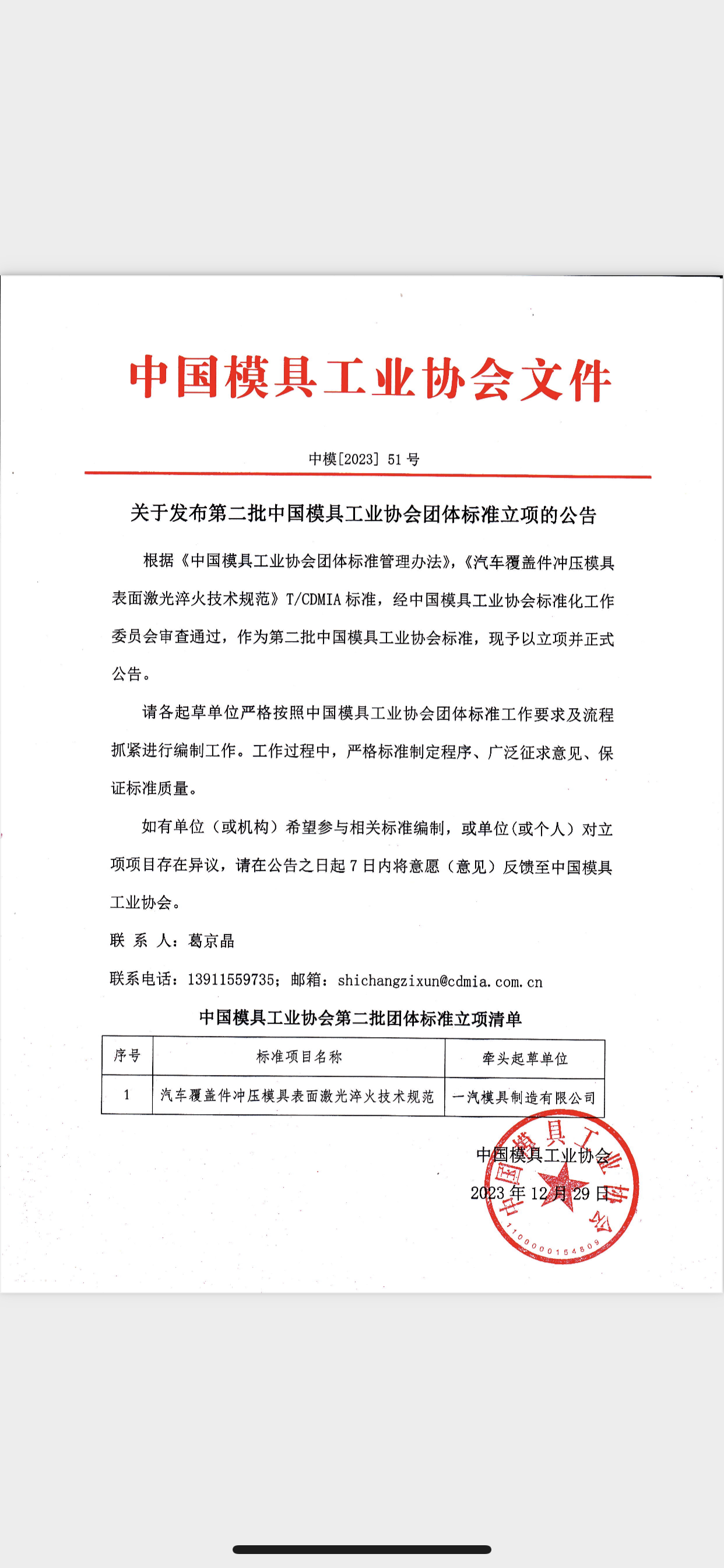 第二批中國模具工業(yè)協(xié)會(huì )團體標準立項公告