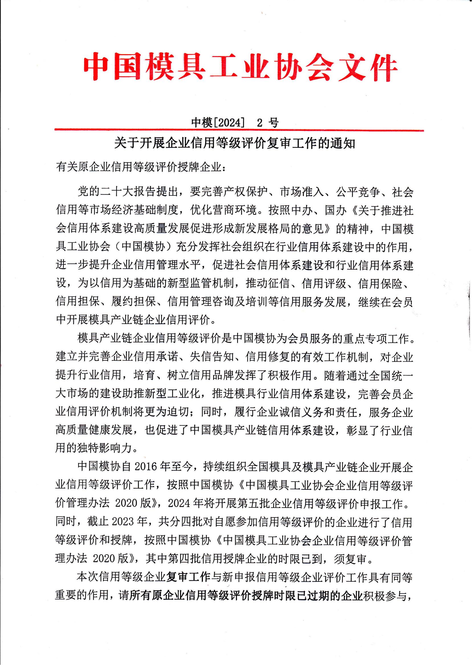 附件一:2024中國模具工業(yè)協(xié)會(huì )企業(yè)信用等級評價(jià)復評申報書(shū).docx