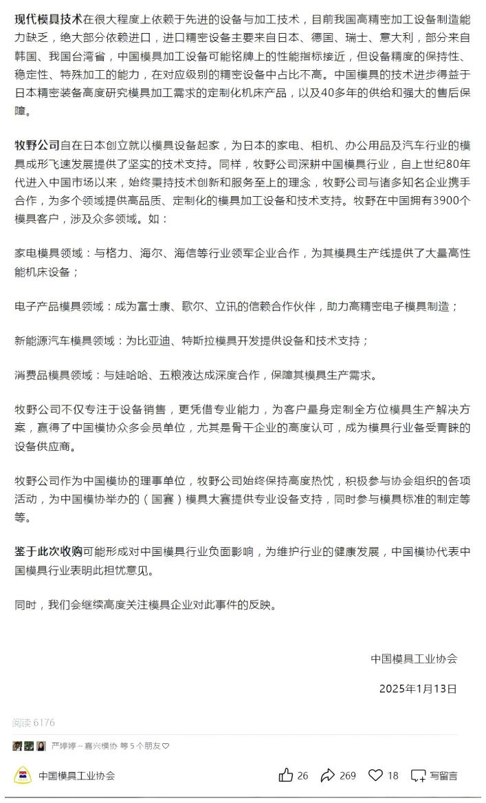 收購牧野公司不利于中國模具產(chǎn)業(yè)的發(fā)展