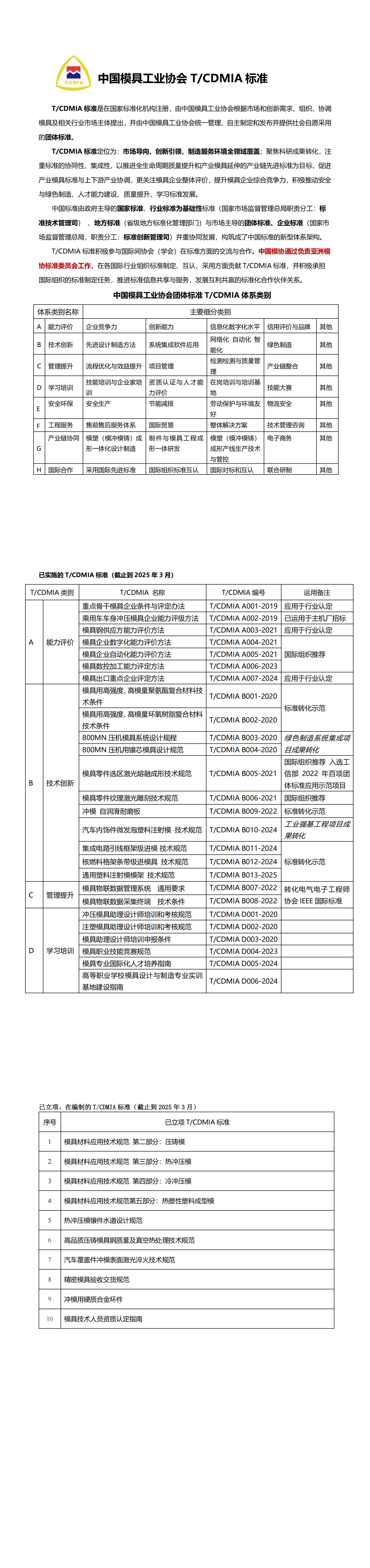 中國模具工業(yè)協(xié)會(huì )T/CDMIA標準